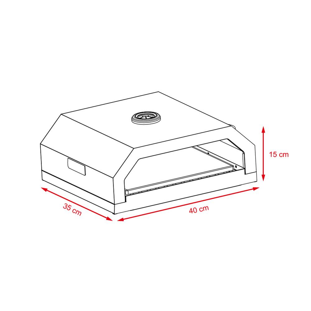 Vestavěný pizza kámen zvládne pizzu až do průměru 30 cm. A aby se vám lépe hlídalo pečení, pec má i integrovaný teploměr. Jednoduše ji položíte na rošt, necháte nahřát a můžete péct – bez zdlouhavé přípravy.