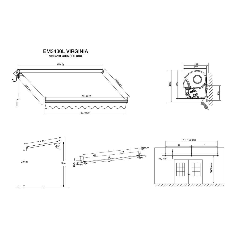 Luxusní kazetová markýza -kotvení markýzy na zeď součástí balení.
