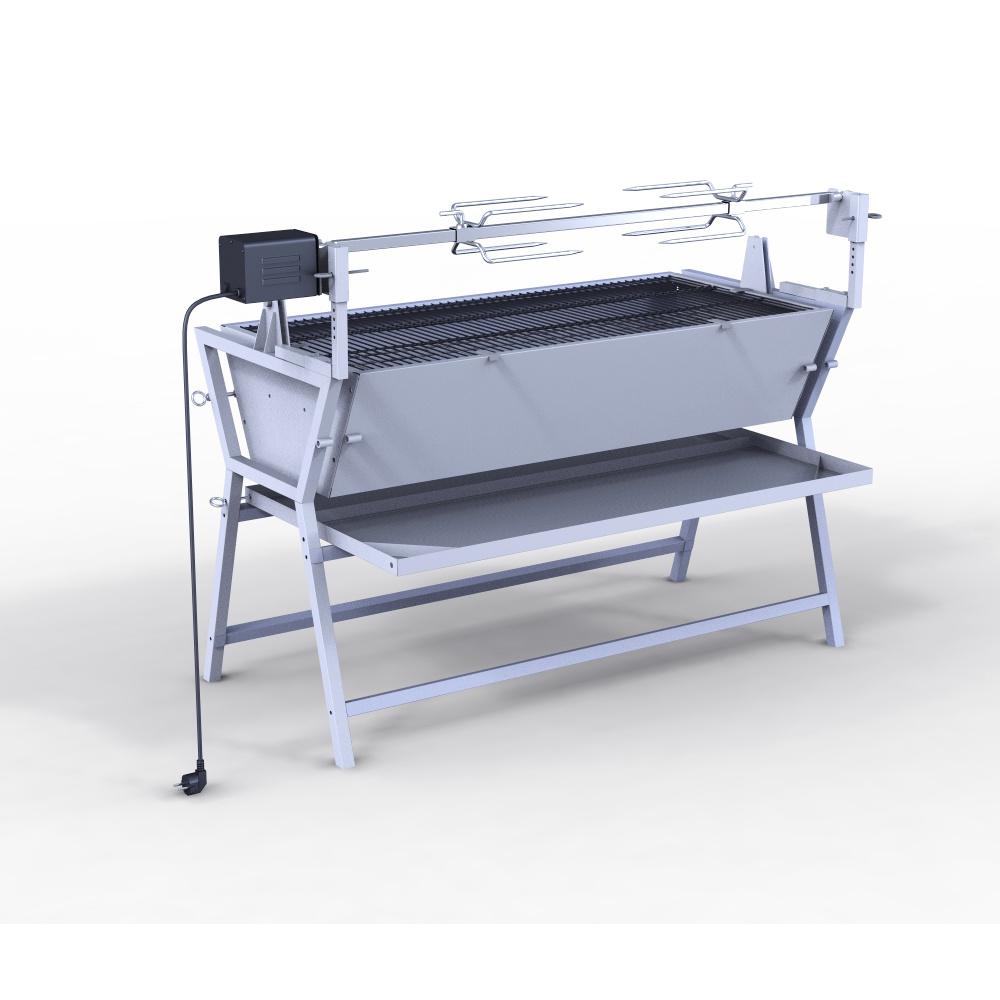 Tento gril má velmi prostornou grilovací mřížku a elektrickou grilovací jehlu. Všichni sousedé vám budou s velkou pravděpodobností závidět, až ucítí vůni pečeného selete či jehněčího. Grilovací jehla je poháněna elektrickým motorem, který se postará o rovnoměrně propečené maso.