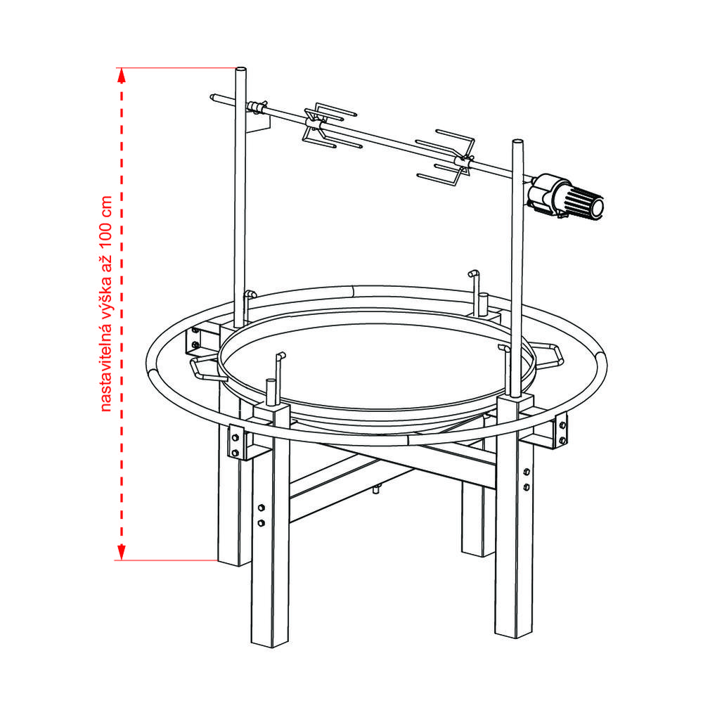 Grilovací otočná jehla s elektrickým motorem a vidlicemi pro uchycení drůbeže Výsuvná – vyjímatelná teleskopická konstrukce, nastavení výšky výsuvu šroubem s křídlovou hlavou, maximální výška : 100 cm Snadná montáž, údržba a čištění Baterie 1,5V typu D - není součástí balení ohniště Návod k obsluze v českém jazyce, záruka 24 měsíců