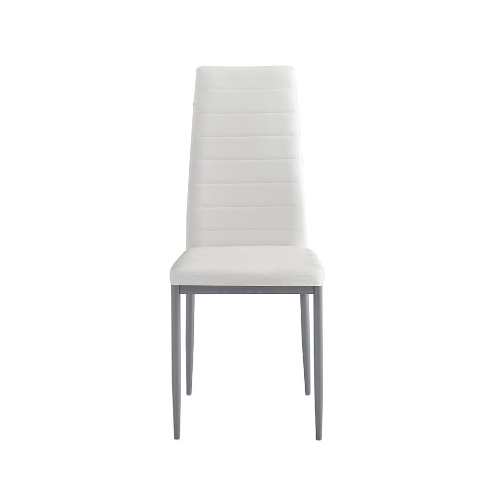 Set se skládá ze skleněného stolu a čtyř pohodlných židlí s měkkým čalouněním, takže si v klidu vychutnáte snídani, rodinnou večeři i nedělní kávu. Ergonomické tvarování opěradel a příjemný povrch eko-kůže zajistí pohodlné sezení, ať už u