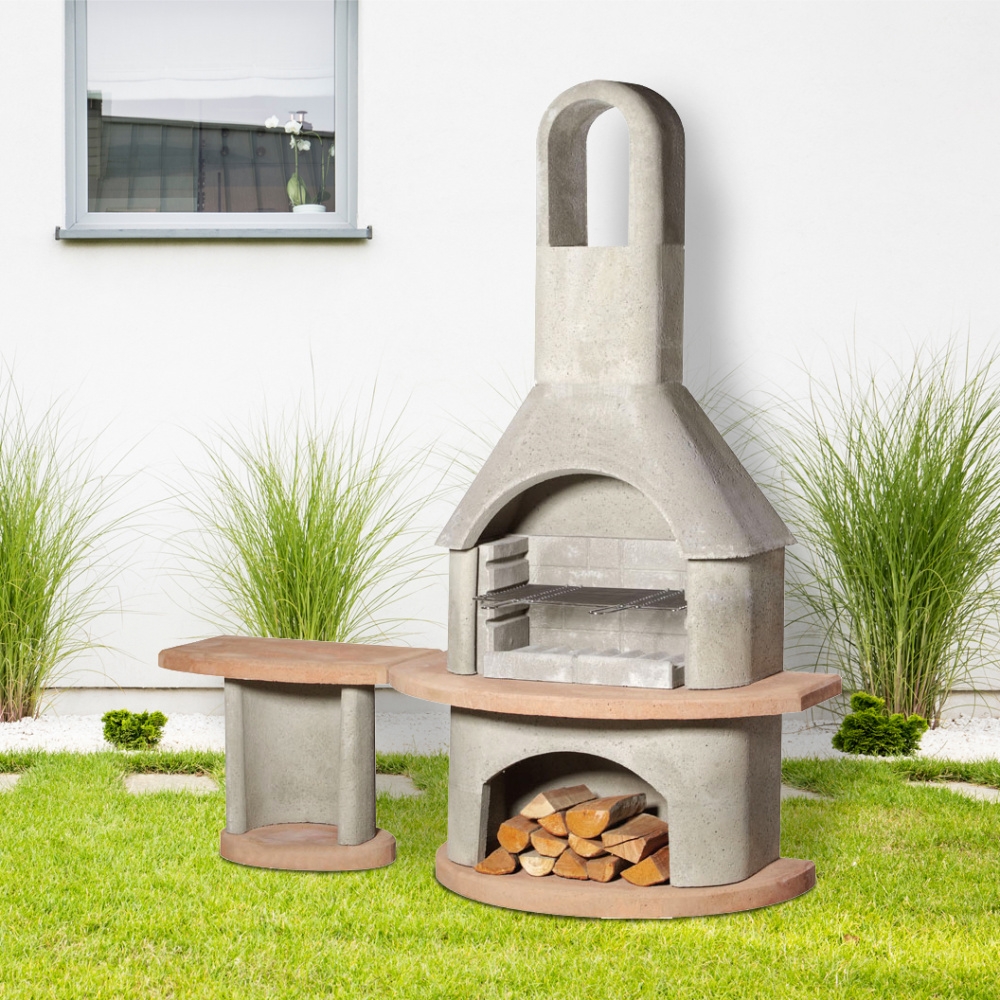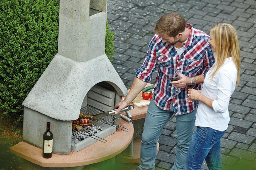 Sestavu krbu doplňuje praktický odkládací betonový stolek, který výborně poslouží jako prostor pro přípravu při grilování nebo jako servírovací stolek.