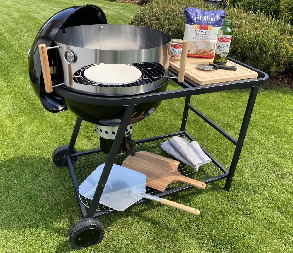 Součástí grilu je nerezový nástavec s elektrickou grilovací jehlou sloužící jako pizza pec včetně kámenu na pečení ze speciální keramiky.