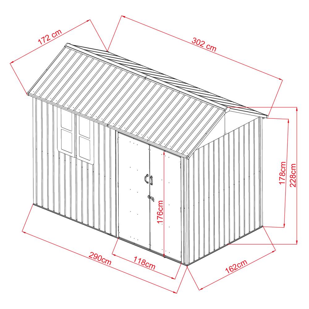Kovově vyztužený rám a možnost zamykání visacím zámkem, umožňuje uživatelům efektivně zabezpečit uložené předměty. Domek skvěle chrání před větrem a deštěm stejně jako před ostatními nepříznivými povětrnostními podmínkami.