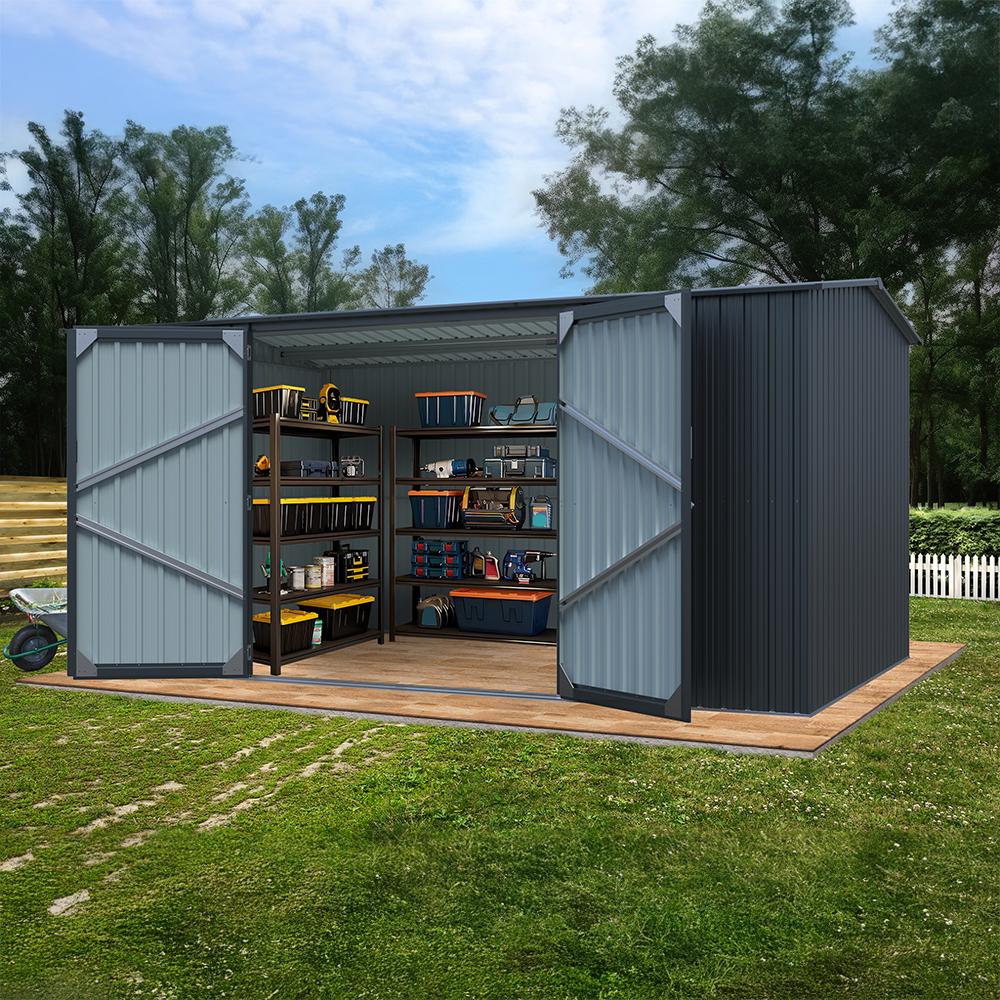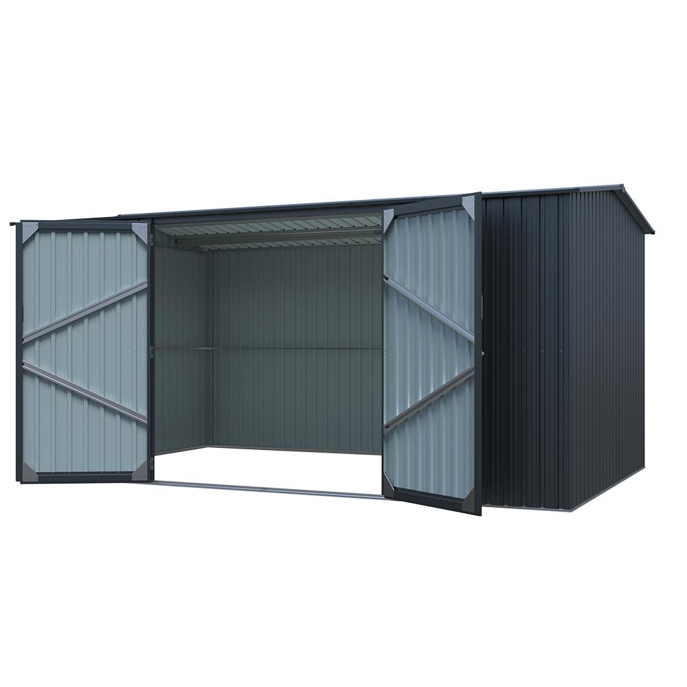 Extra široké křídlové dvěře - celková šířka 1.74 m - pro komfortní a snadný přístup! Obdélníkové provedení domku zajistí přehlednější uložení zahradní techniky a materiálu, snazší přístup.