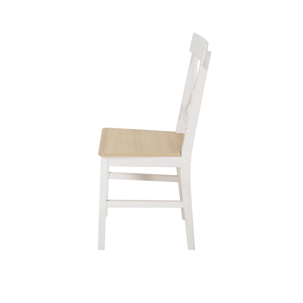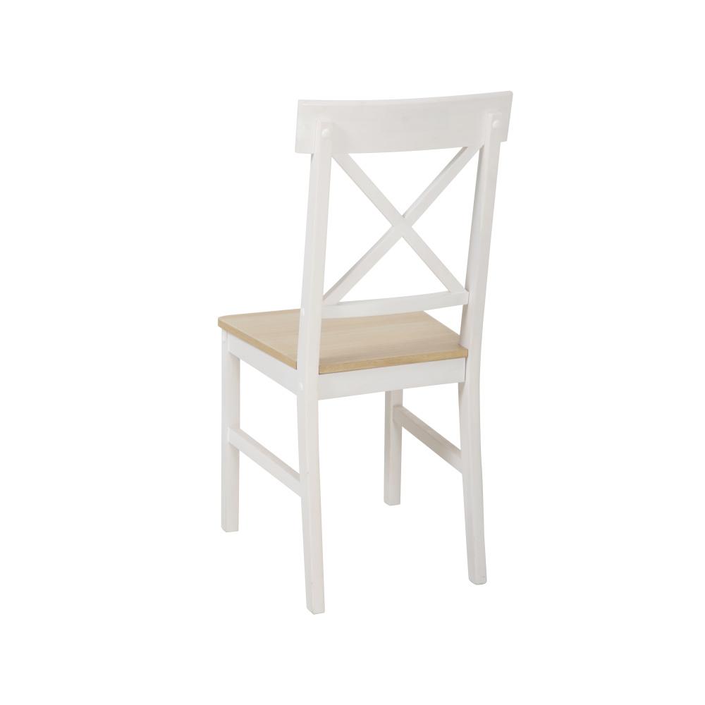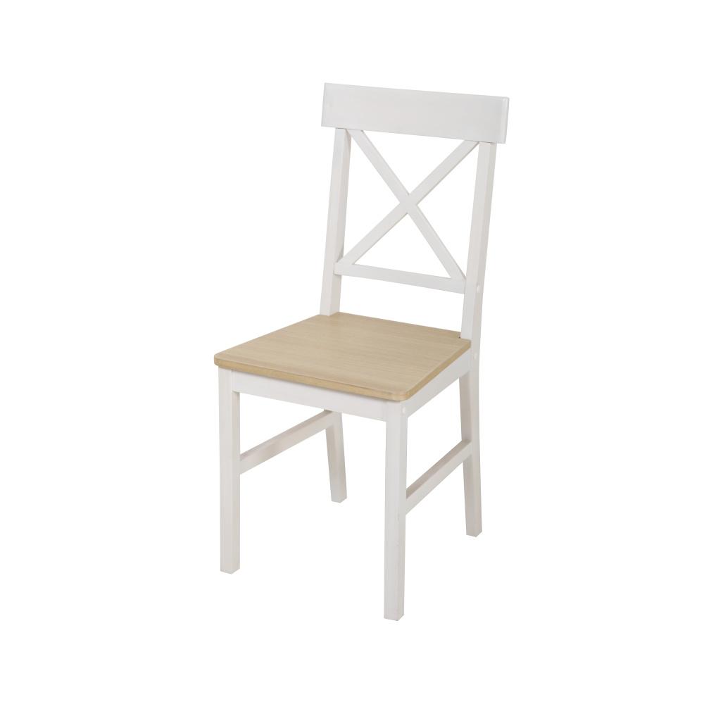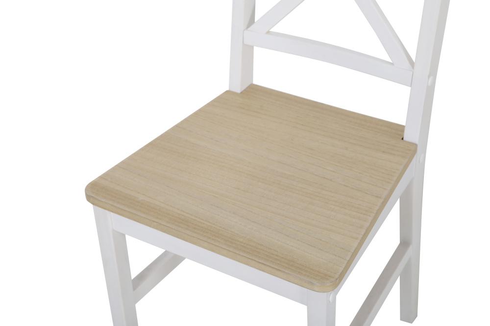 Jídelní židle LINA vyrobená ze dřeva v odstínu bílá. Sedák je z MDF v dezénu přírodní dřevo. Klasický design židle s opěrákem zdobeným do tvaru kříže je vhodný jak do kuchyně, tak i do jiných interiérů.