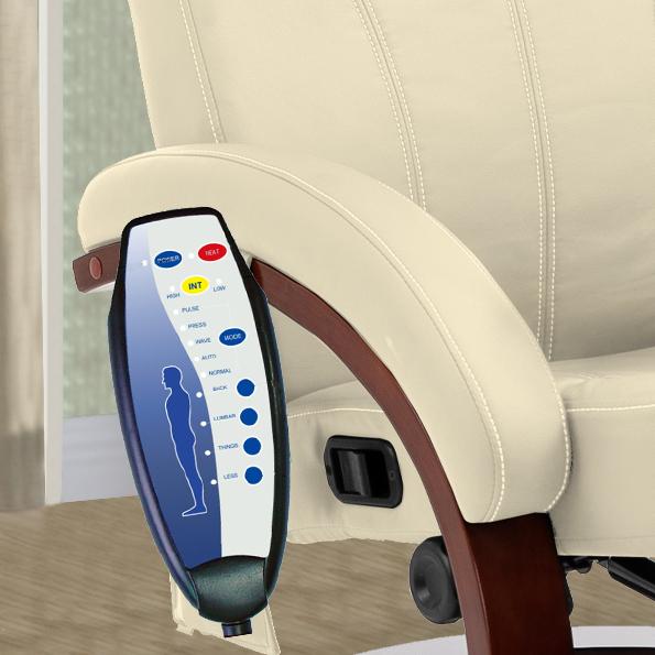 Toto elegantně navržené polohovatelné masážní relaxační televizní křeslo nabízí bodovou masáž v 5 režimech, stejně jako funkci vytápění pro 3 oblasti, kterou lze snadno použít s dálkovým ovladačem. Čalounění elegantní béžovou koženkou, která je měkká na dotek. Křeslo je vybaveno měkkým polstrováním, vysokou opěrkou zad, zakřivenými loketními opěrkami a polštářem pro hlavu zaručujícím dlouhé a pohodlné sezení. Vhodné pro všechny moderní nebo tradiční interiéry, obývací pokoje, studovny nebo ložnice.