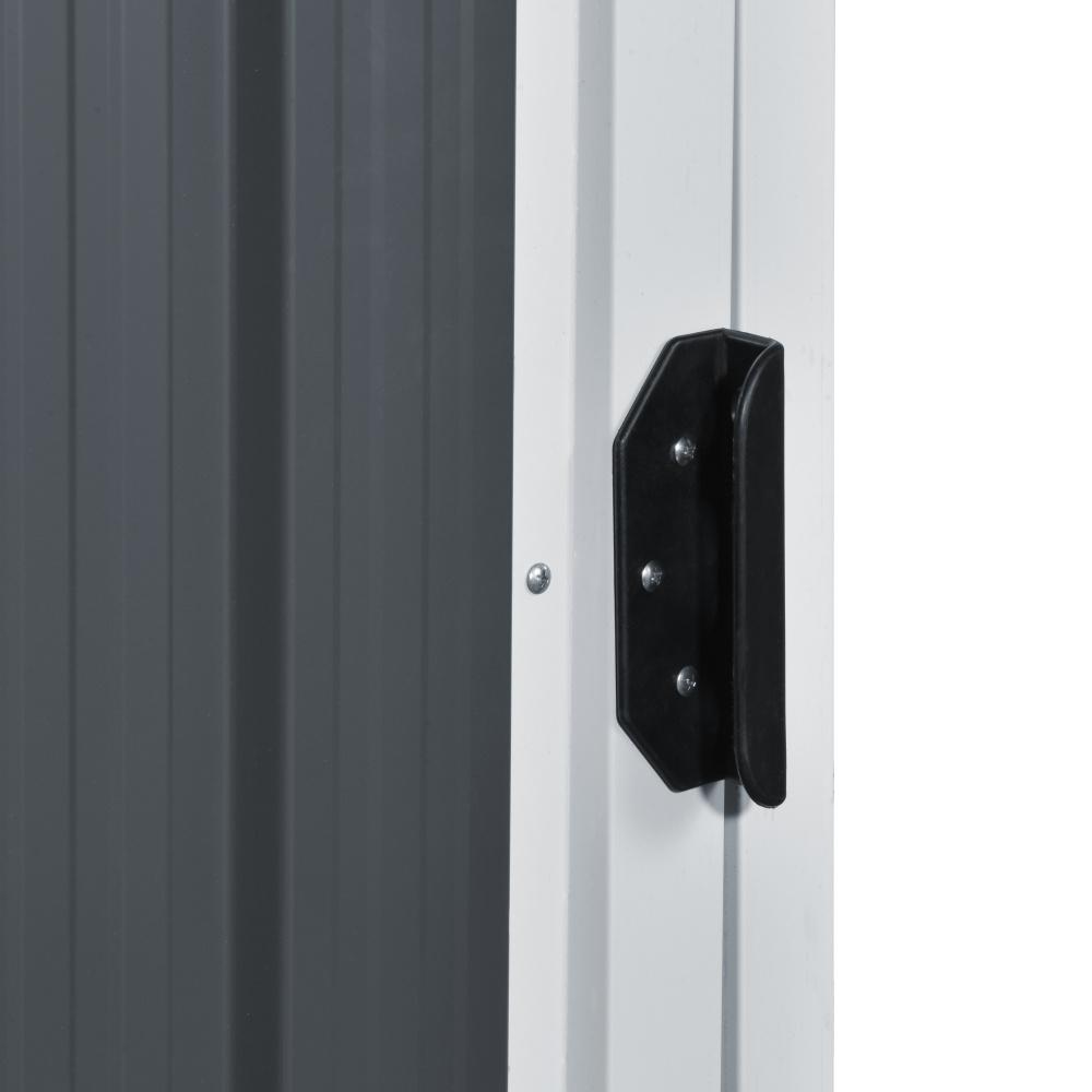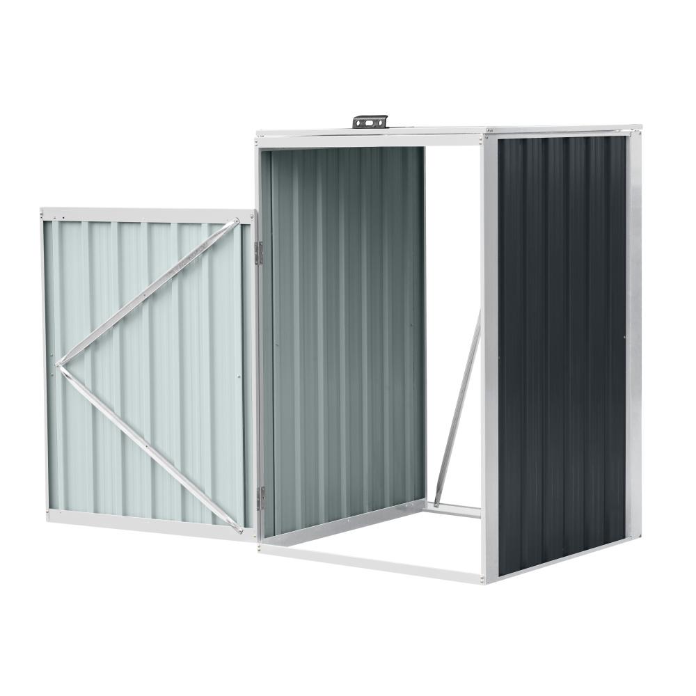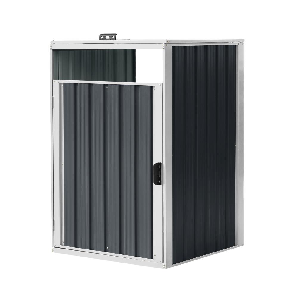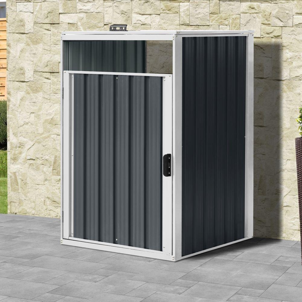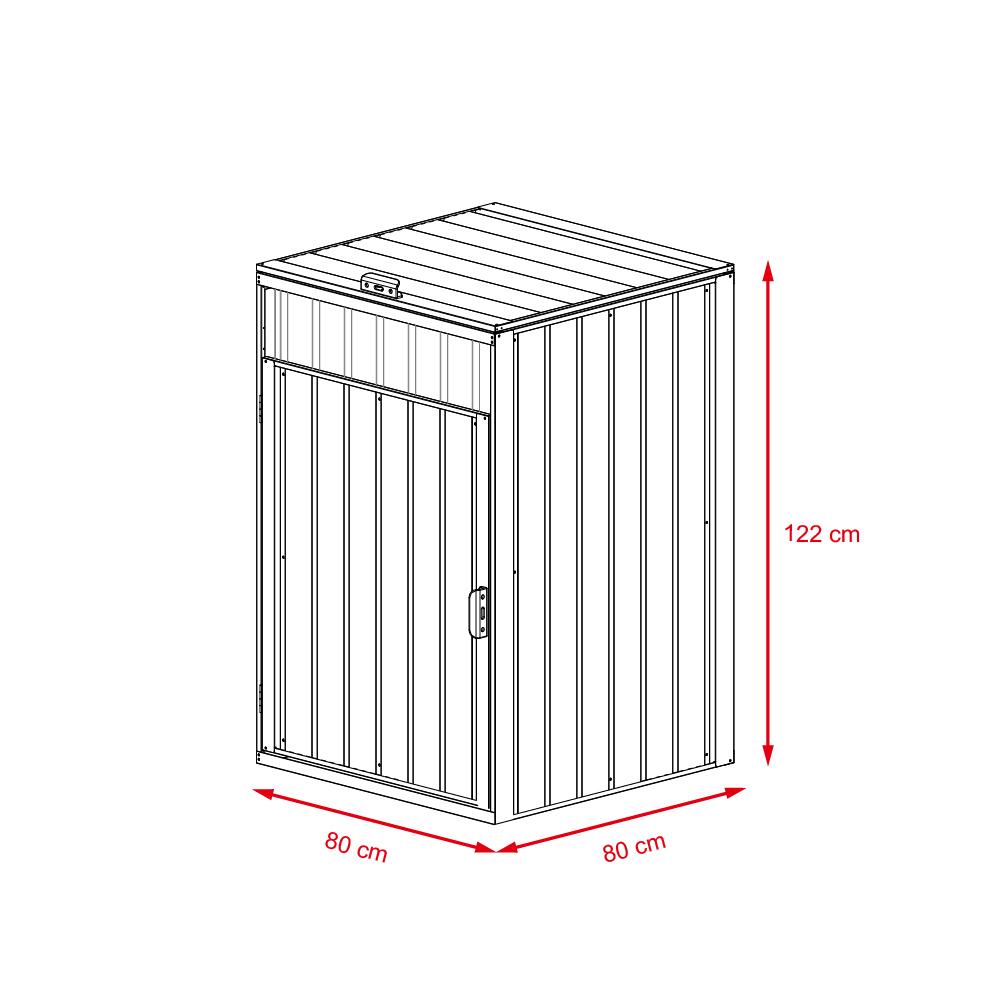Praktický přístřešek perfektně zakryje a uschová popelnice až o velikosti 240 l . Popelnice tak nebude hyzdit vaši zahradu a přístřešek vytvoří krásné čisté prostředí. Přístřešek na popelnici z pozinkované oceli je uzamykatelný a mimořádně odolný vůči povětrnostním podmínkám. Užitečné větrací otvory umožňují cirkulaci vzduchu, a zabraňují tak nepříjemným zápachům. Systém zamykání zajišťuje bezpečné skladování odpadu.