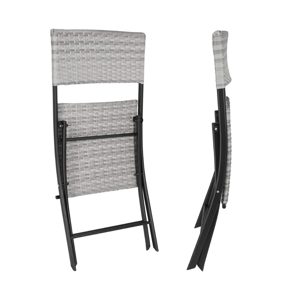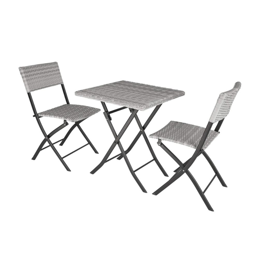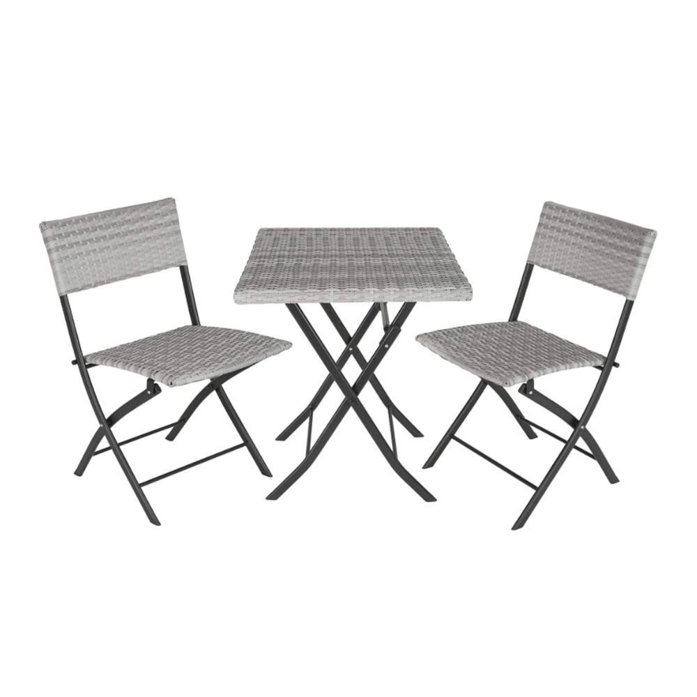 Skládací set je zpracovaný v elegantním šedém ratanovém designu. Je jednoduše rozložitelný a všestranně použitelný na balkoně, terase nebo na zahradě. Příjemně strávenému času na čerstvém vzduchu nestojí nic víc v cestě. Samozřejmě můžete komplet použít i ve svém domově. Nohy jsou opatřeny záslepkami. Stabilní a nenáročné na údržbu. V případě, že nábytek zrovna nepoužíváte, obratem ruky jej sklopíte a úsporně uskladníte.