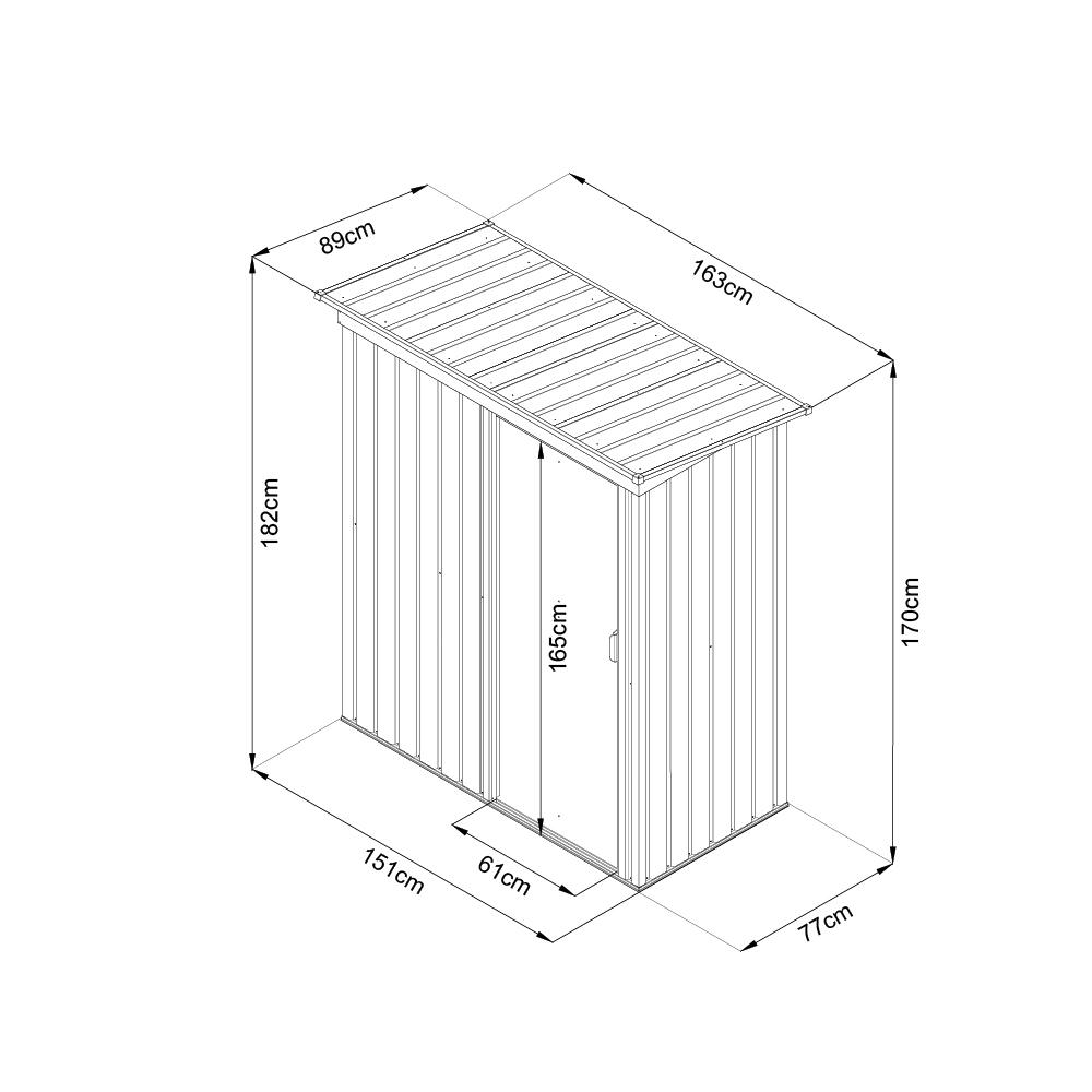 zahradu a přesto poskytne dostatek prostoru pro vše potřebné. Výška dveří 165 cm vám umožní pohodlný přístup dovnitř, aniž byste se museli ohýbat. Celková výška 182 cm dodává dostatečný prostor na uložení i vyšších předmětů.