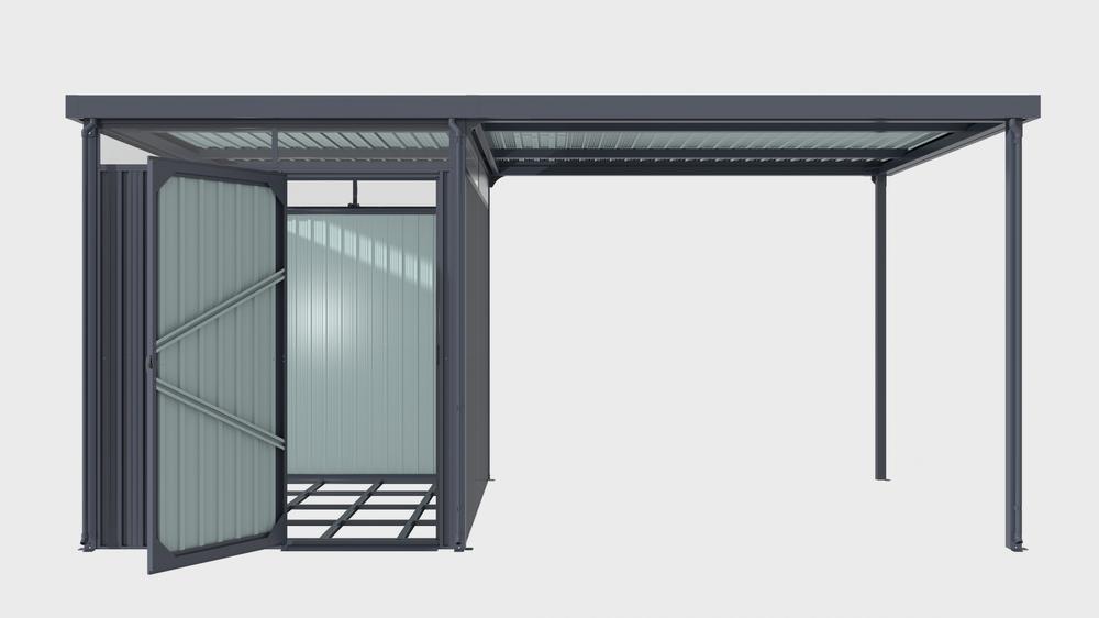 Tato přístavba má rozměry 245 x 286 x 226 cm, což poskytuje dostatek prostoru pro pohodlné zaparkování auta nebo vytvoření příjemného posezení na zahradě. Díky modernímu designu a antracitové barvě RAL7016 bude skvěle ladit s jakýmkoli zahradním domkem Avenberg MAGNUS.