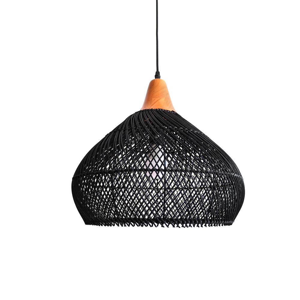 Závěsná lampa z ratanu a dřeva – kompaktní černá elegance pro váš interiér!