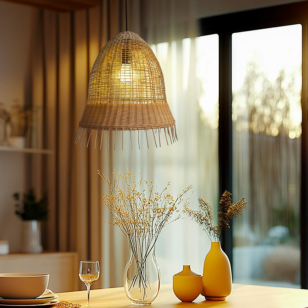 Závěsná lampa z kovu, ratanu a bambusu – přírodní elegance pro každý interiér!