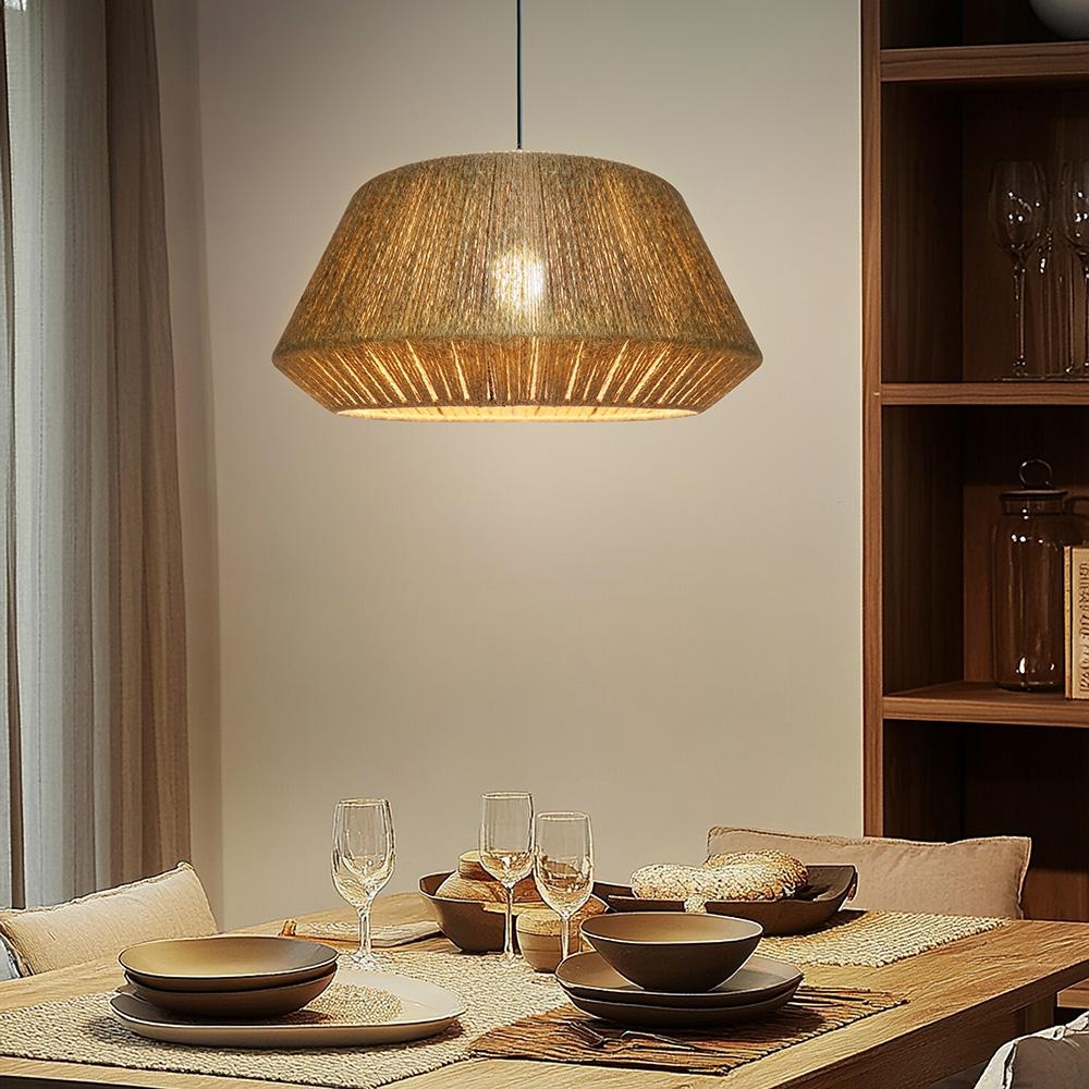 Široký průměr 50 cm a výška 26 cm zajišťují, že lampa vynikne jako centrální prvek v místnosti. Přírodní odstín konopného lana a kovová základna dodávají lampě robustní, ale přesto elegantní vzhled. Svítidlo jemně rozptyluje světlo, které vytvoří příjemnou atmosféru v obývacím pokoji, jídelně nebo ložnici.