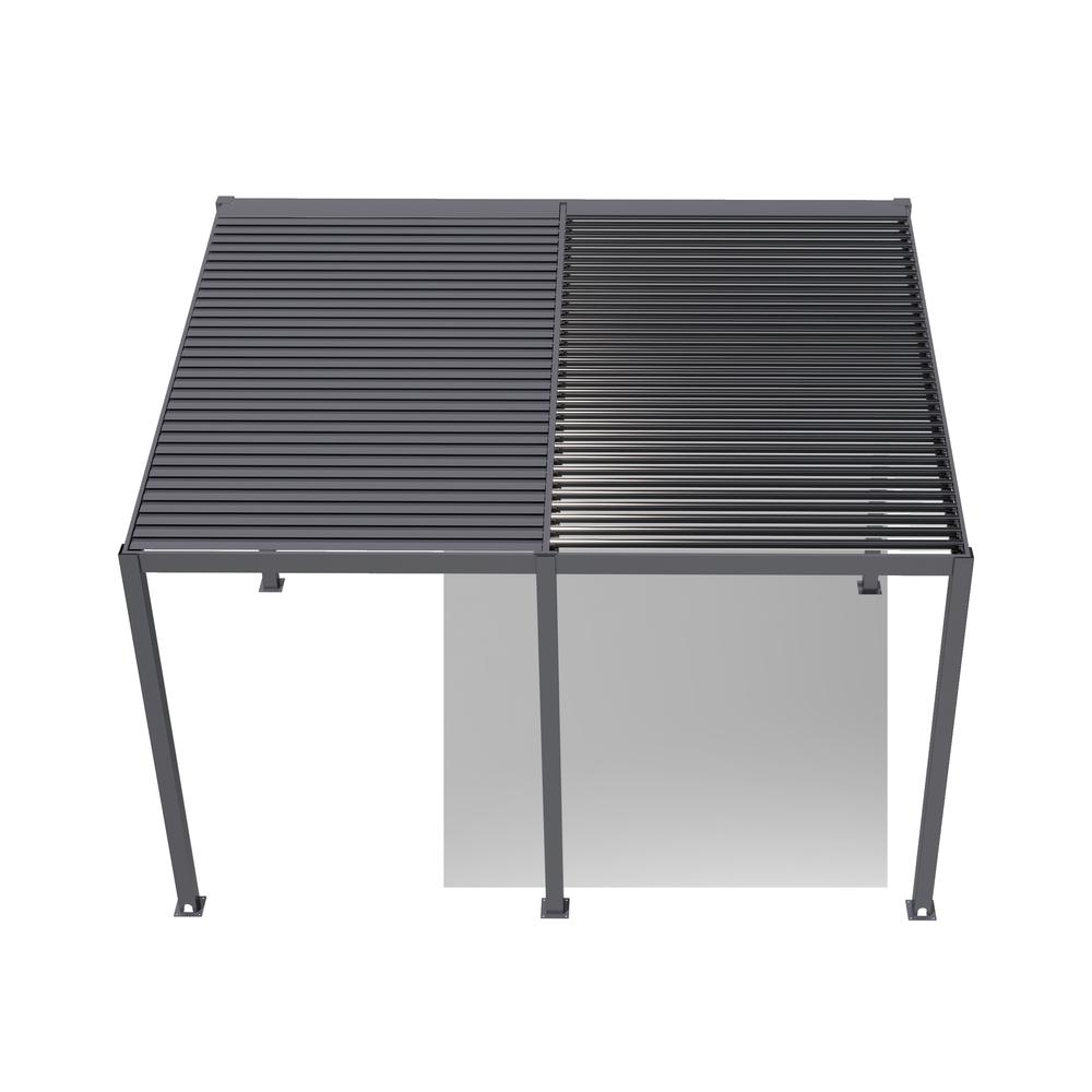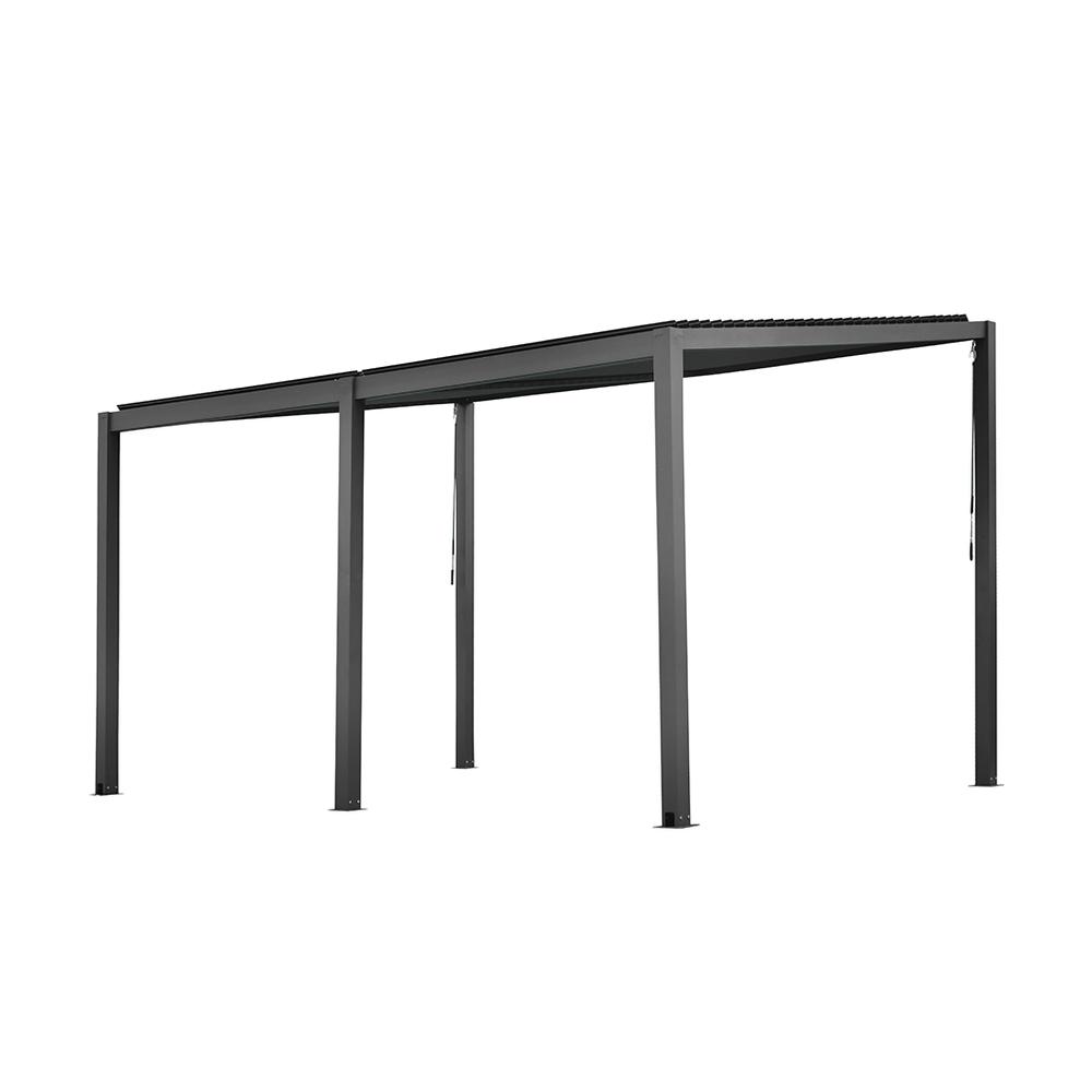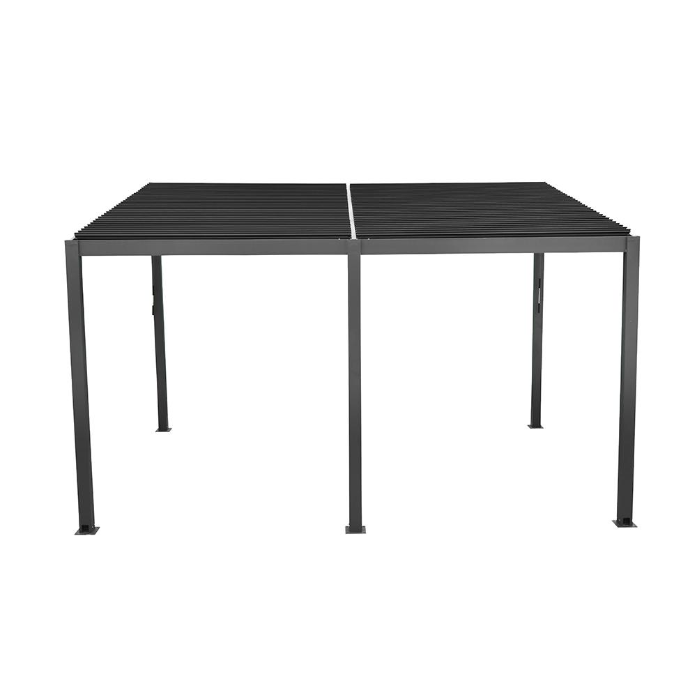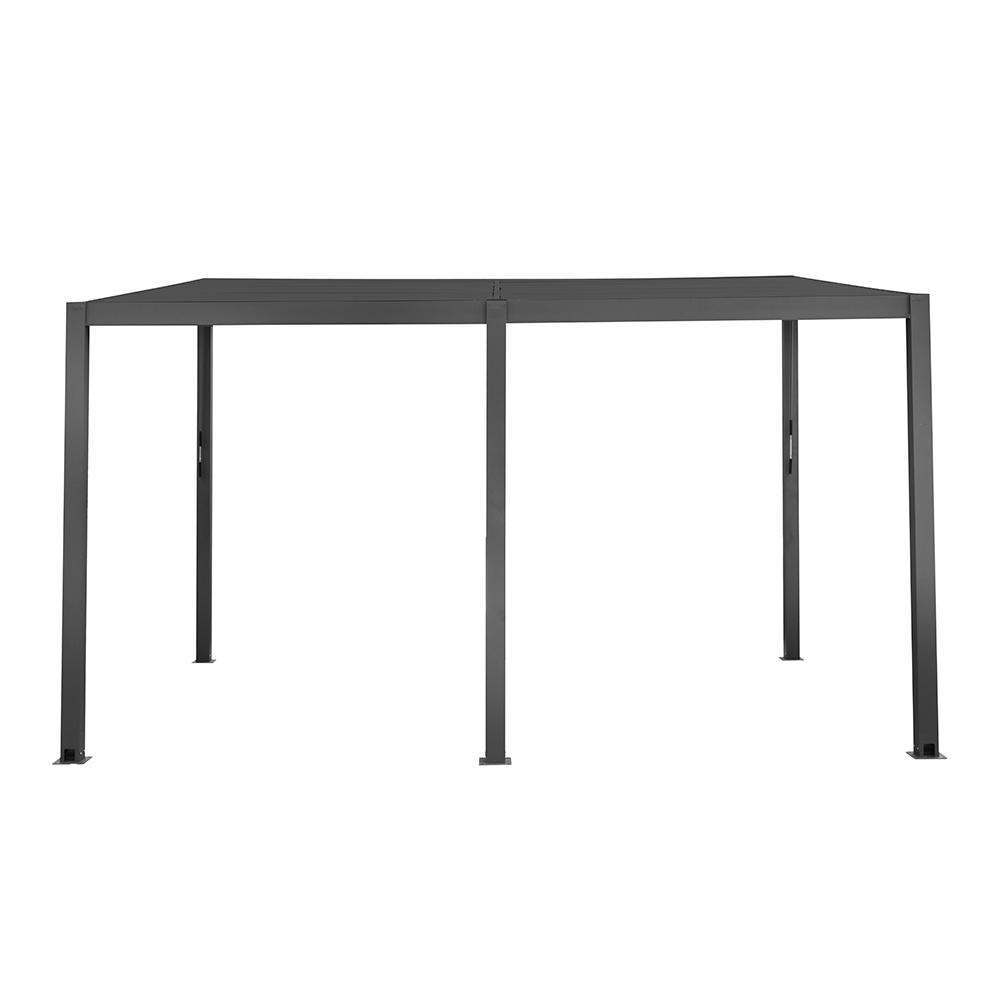Je vyrobena z kvalitních materiálů, které zajišťují vysokou odolnost i dlouhou životnost. Rám pergoly je tvořen hliníkovými profily s práškovým nástřikem, což jí dodává moderní vzhled a zároveň ji chrání proti povětrnostním vlivům. Nerezové konektory a kotvy zajišťují maximální stabilitu konstrukce. A díky nadčasové barvě v šedém odstínu (RAL7024) pergola zapadne na každou zahradu nebo terasu.