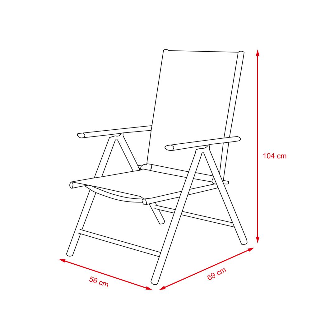 zahradě. Prodyšná polyesterová textilie BlackTex poskytuje pohodlí i v teplých dnech, zatímco pevná kovová konstrukce s práškovou úpravou zajišťuje stabilitu a dlouhou životnost. Křesla jsou skládací, což usnadňuje jejich skladování a přemísťování.
