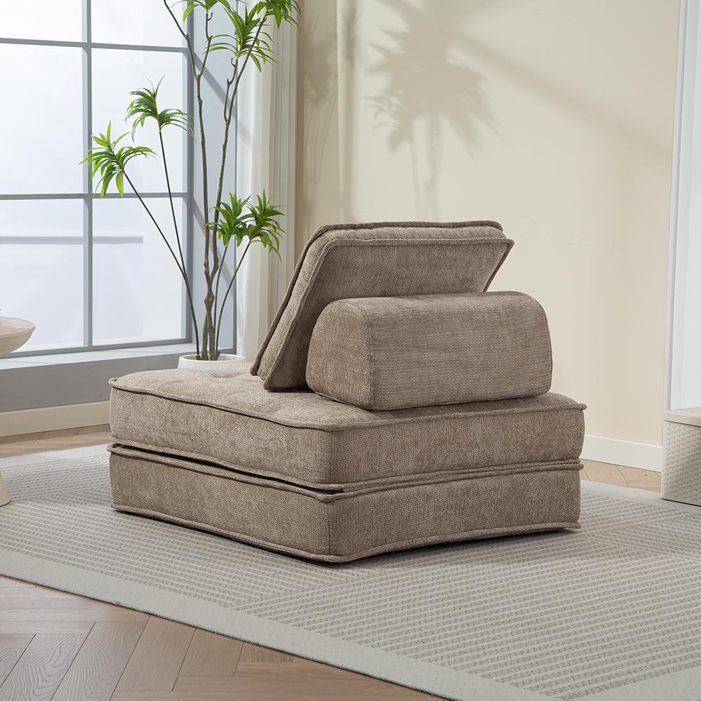 který zvládne být přes den křeslem, večer postelí a kdykoliv chill zónou. Jemný hnědý odstín působí přirozeně a útulně – hodí se do moderního interiéru, rustikálního koutku i na víkendovou chatu.