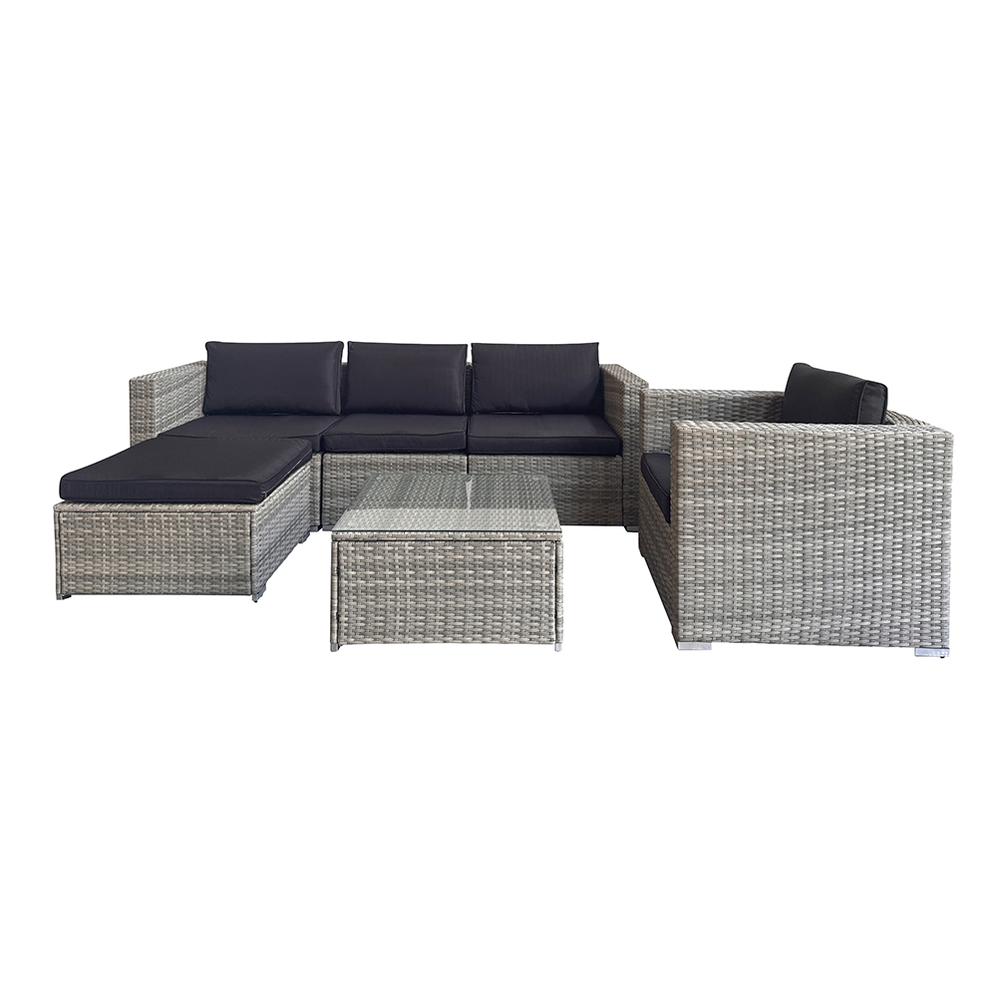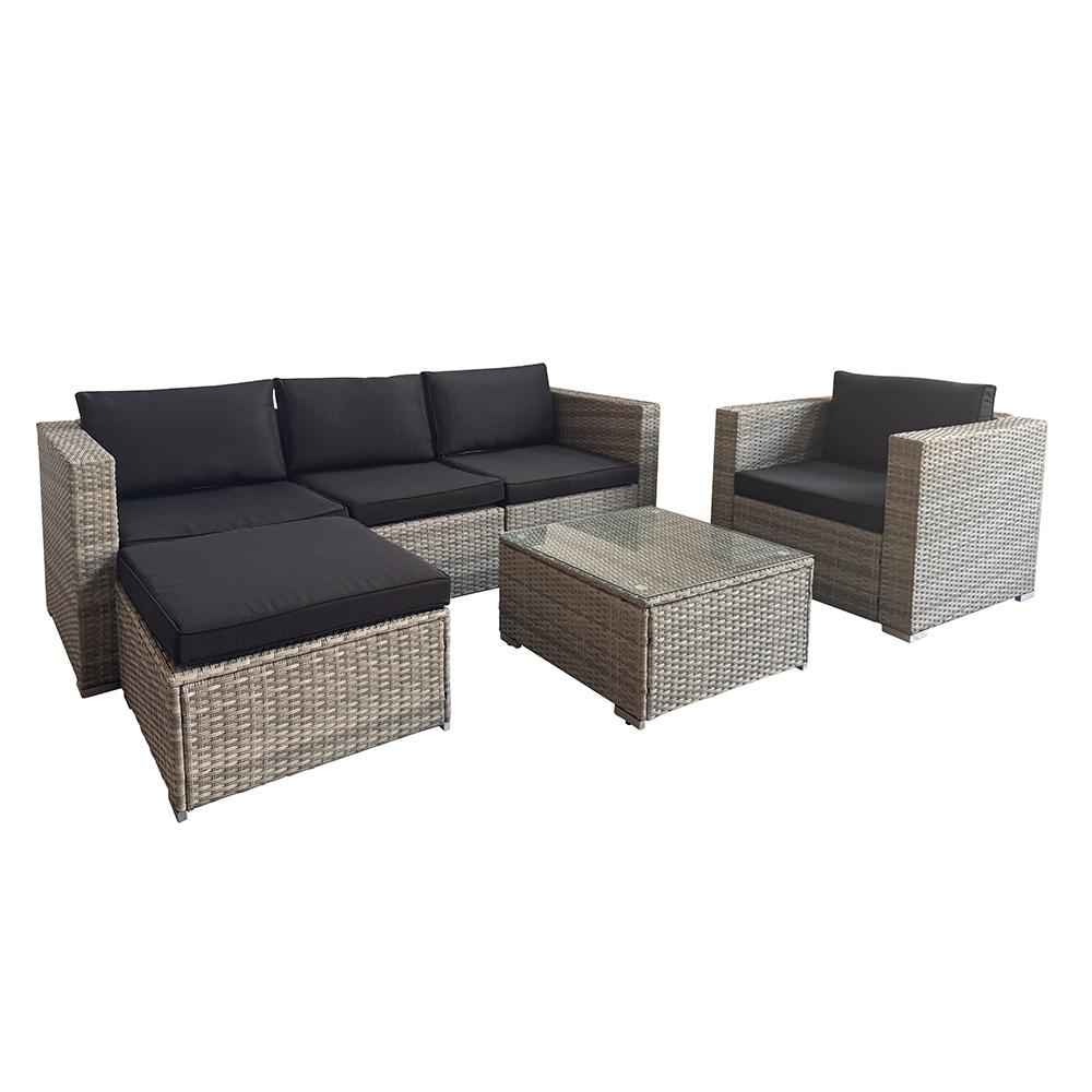 šedého PE ratanu a elegantních černých polstrů vypadá skvěle u domu, na terase,