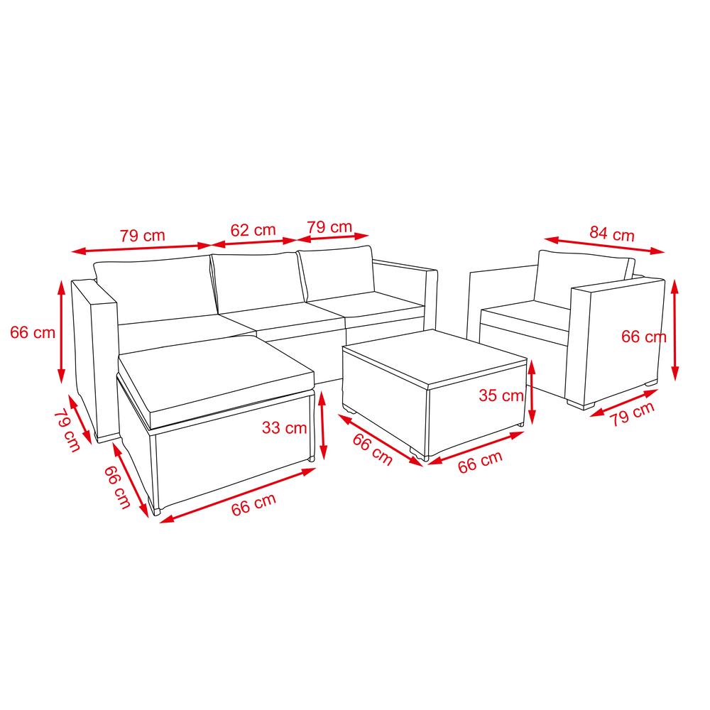 zahradní sedací souprava je složená ze šesti částí včetně