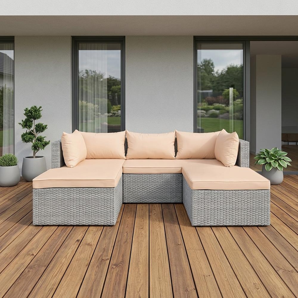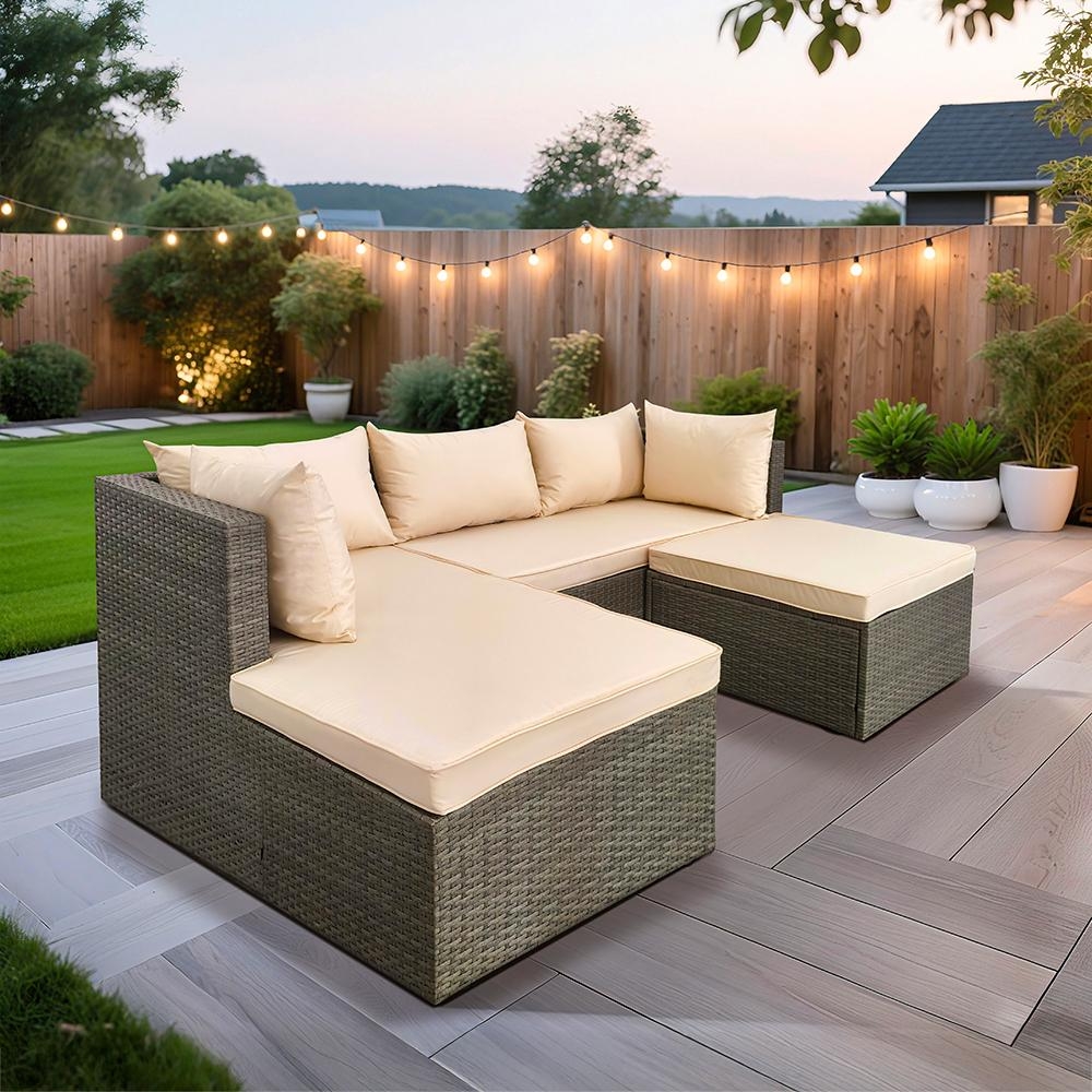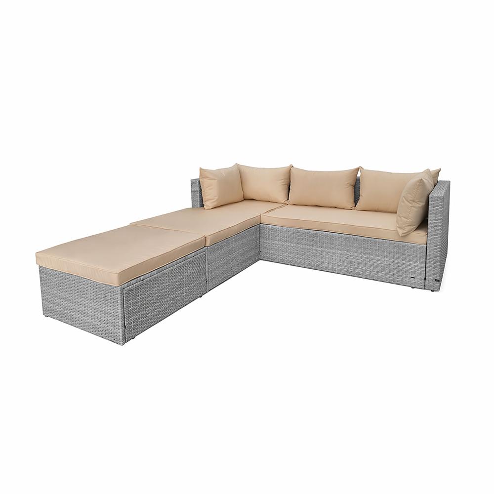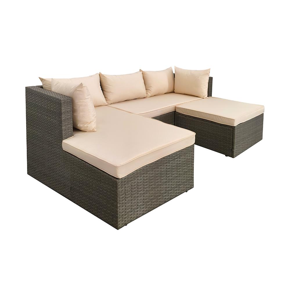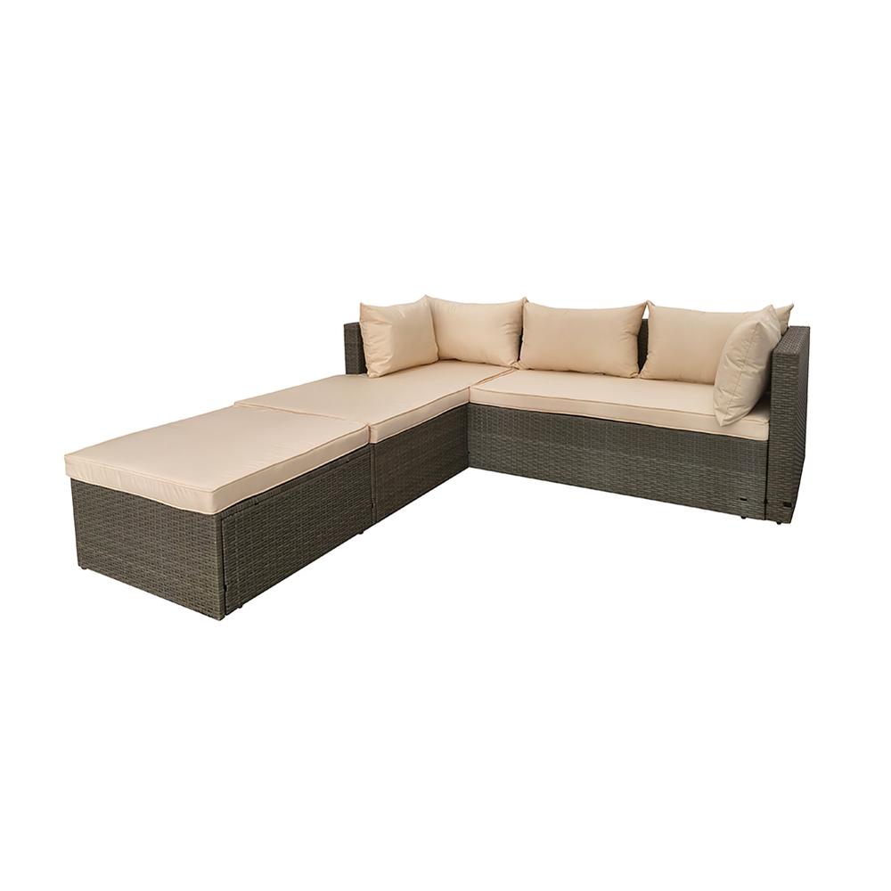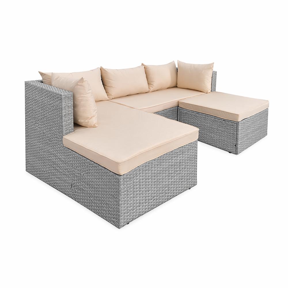 | Moderní krémové polstry krásně kontrastují s tmavěšedým ratanem | |