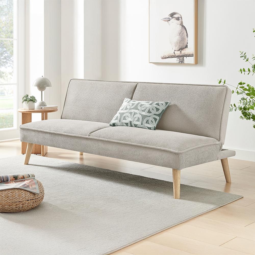 pohovka v neutrální béžové barvě zapadne kamkoliv. Díky jednoduchému designu s dřevěnými nohami působí lehce a vzdušně.