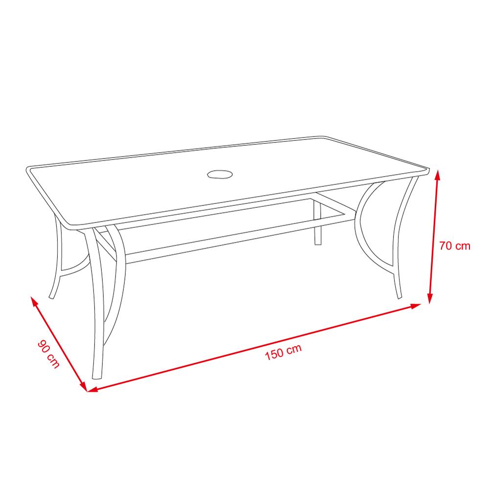 Kompletní sestava zahrnující 1x stůl, 6x křeslo a 1x slunečník (Stojan na slunečník není součástí setu)