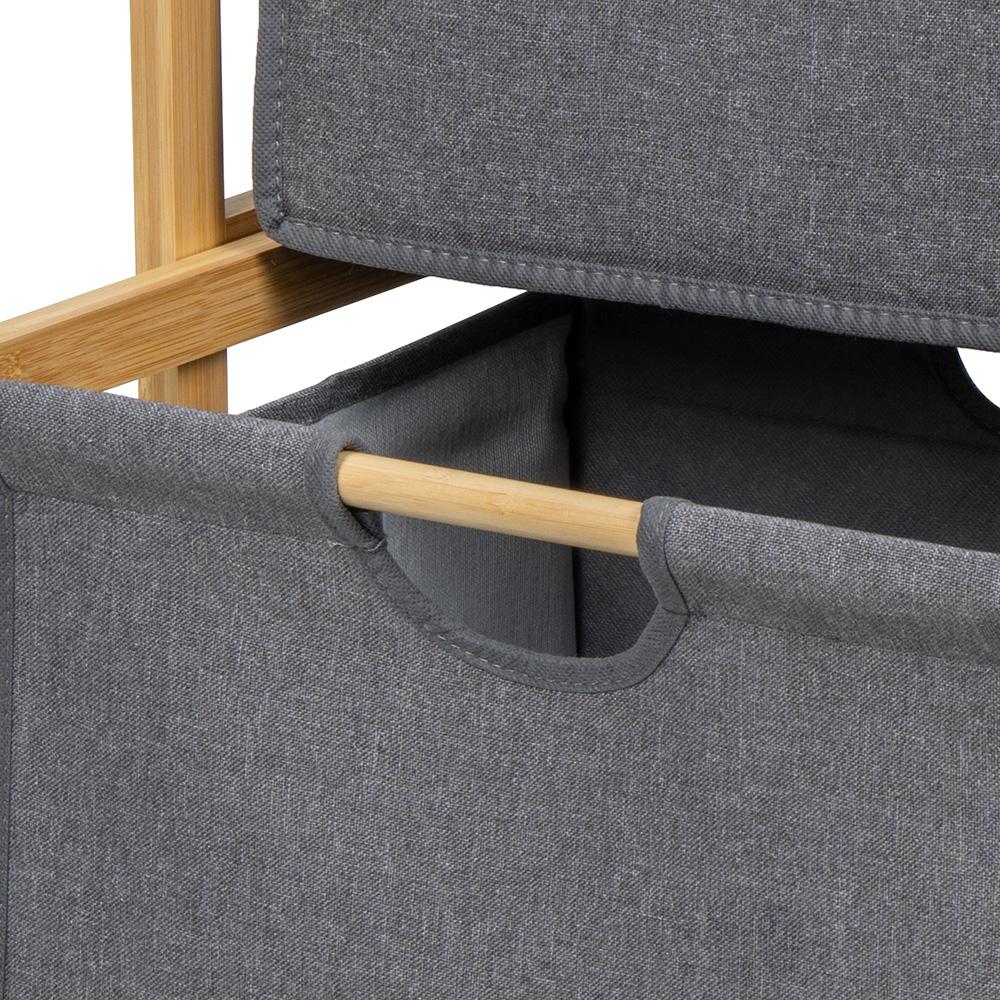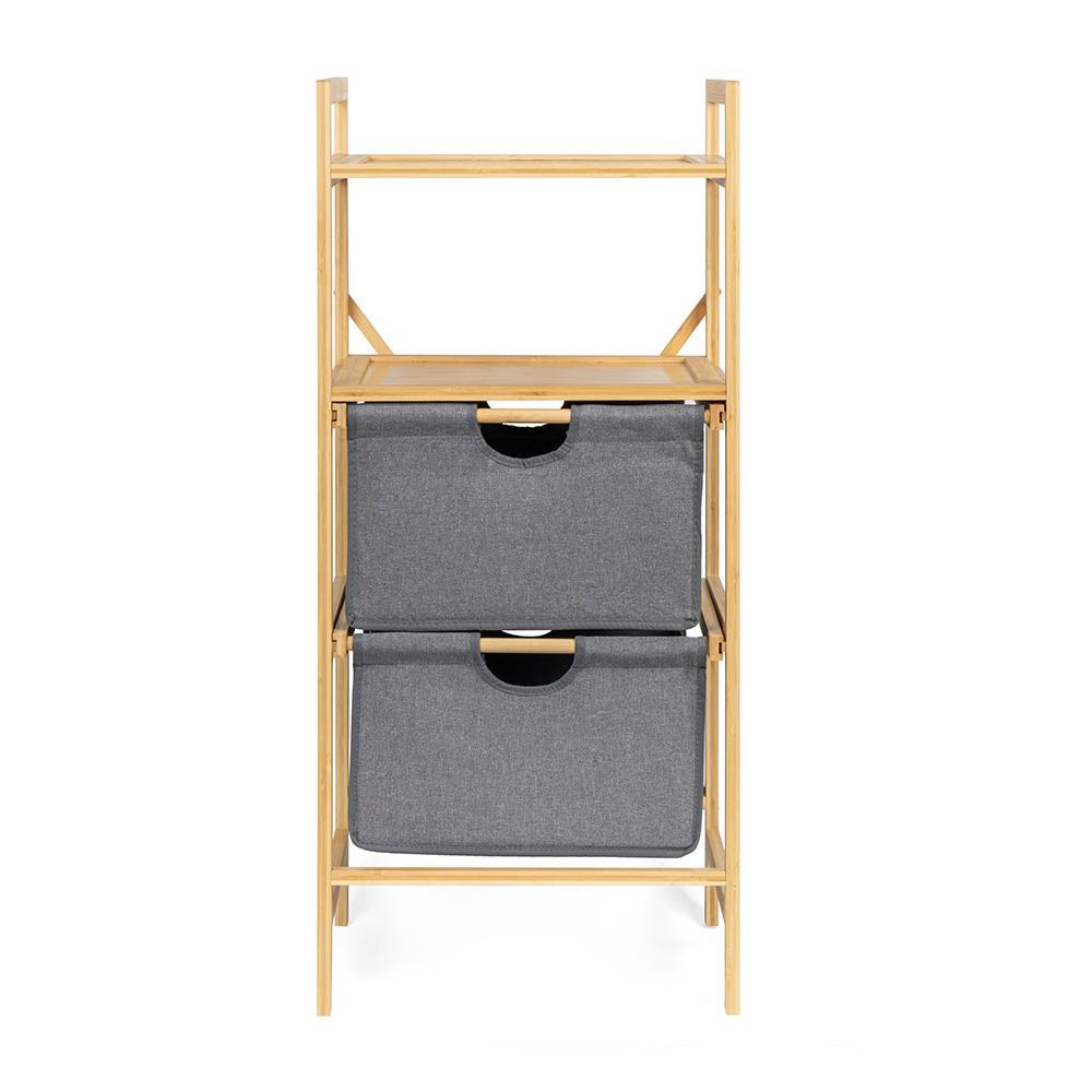 Bambusový regál AVENBERG BAMBU DUO kombinuje přírodní bambus s praktickými látkovými šuplíky v šedé barvě. Nahoře máte odkládací plochu na ručníky, kosmetiku nebo dekorace, dole zase dva „úložiště“ na drobnosti, které se jinak válí všude možně.
