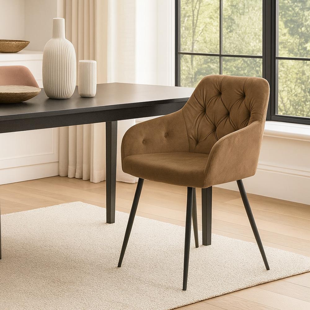 Určitě — jde o jídelní židli s područkami, která je ideální pro pohodlné stolování.