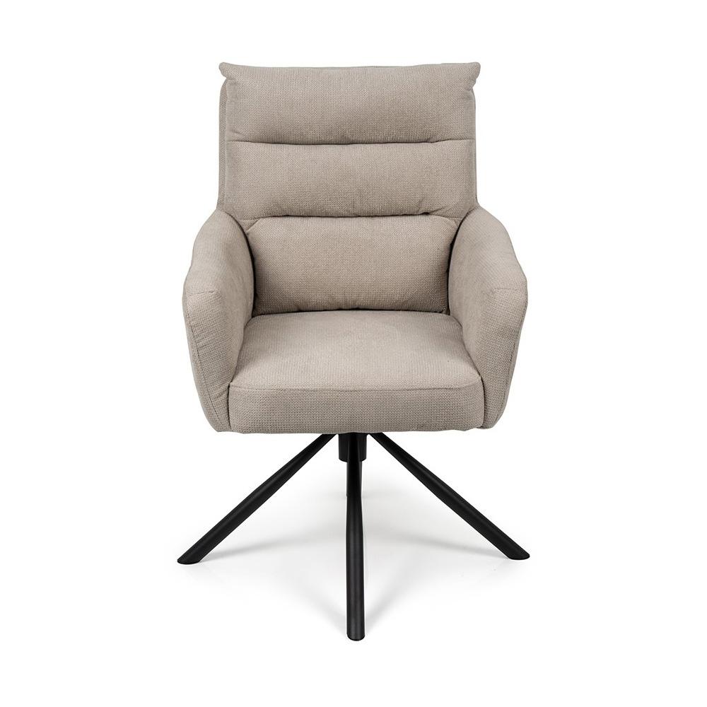 Béžový látkový potah působí čistě a nadčasově, černá kovová podnož dodá stabilitu a moderní kontrast. Díky