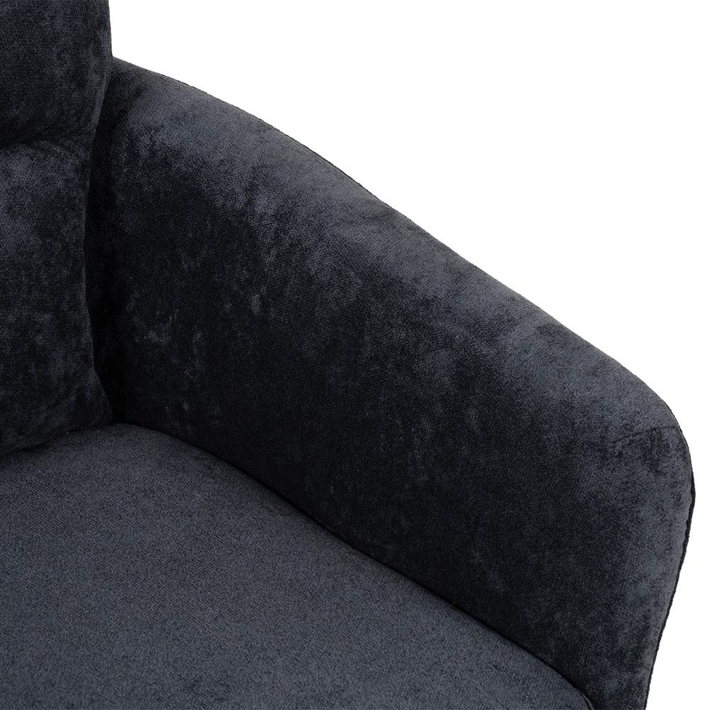 Tmavě šedý látkový potah dodá interiéru nadčasový a elegantní vzhled, černá kovová podnož přidá stabilitu i moderní kontrast. Díky