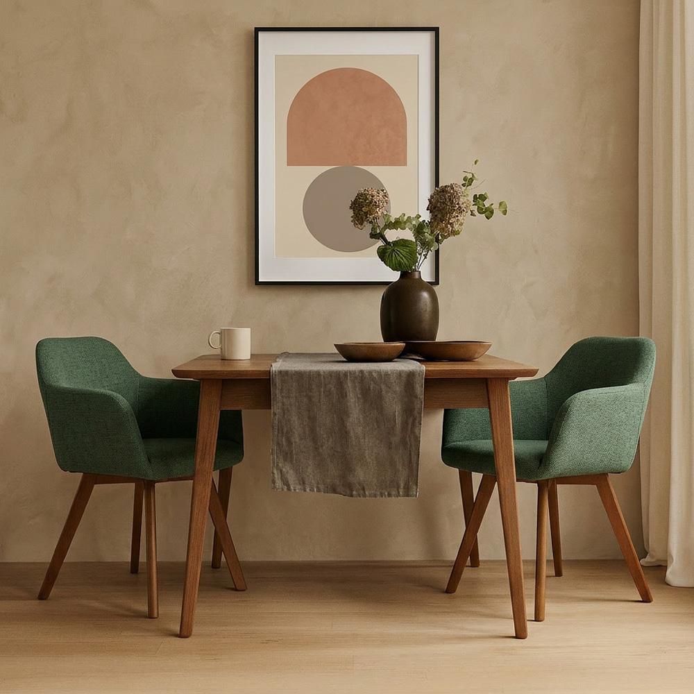 odolné látky s vysokou hodnotou Martindale, takže dobře obstojí při častém používání. Zelený odstín krásně oživí interiér a přitom působí příjemně přirozeně – skvěle ladí s dřevem, béžovou i černými doplňky. Díky pohodlnému tvaru se na židli dobře sedí při jídle, práci i dlouhém povídání u stolu.