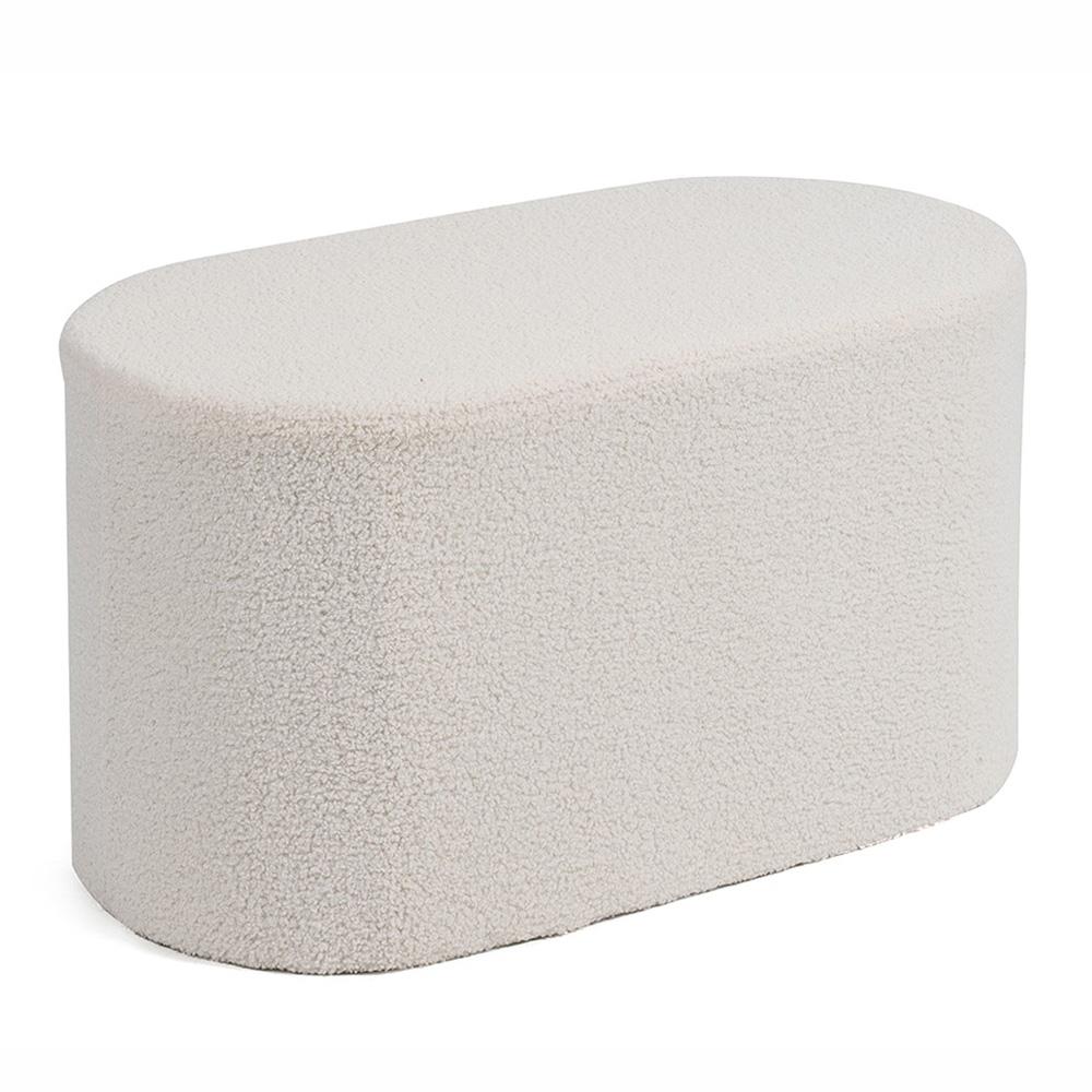 Oválný taburet v bouclé provedení je stylový doplněk do obýváku, ložnice i předsíně. Jemně strukturovaný