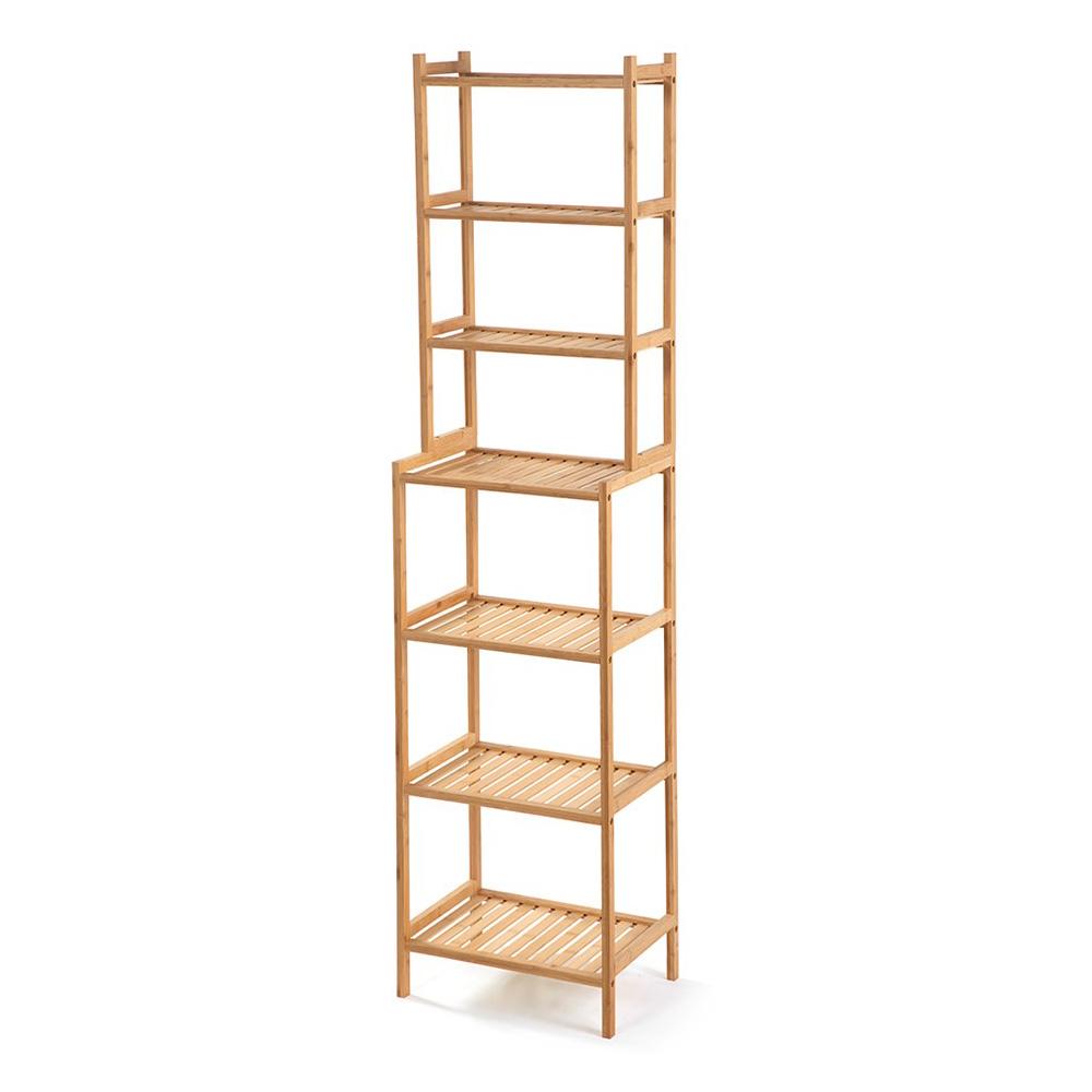 Vysoký bambusový regál se 7 policemi, který udělá pořádek i v malém prostoru – ideální do koupelny.