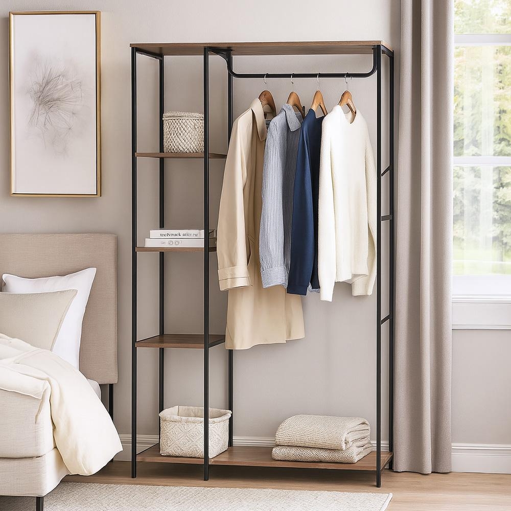 Ocelový věšák s policemi je praktický otevřený šatní stojan, který udrží pořádek v předsíni, šatně i ložnici. Nabízí