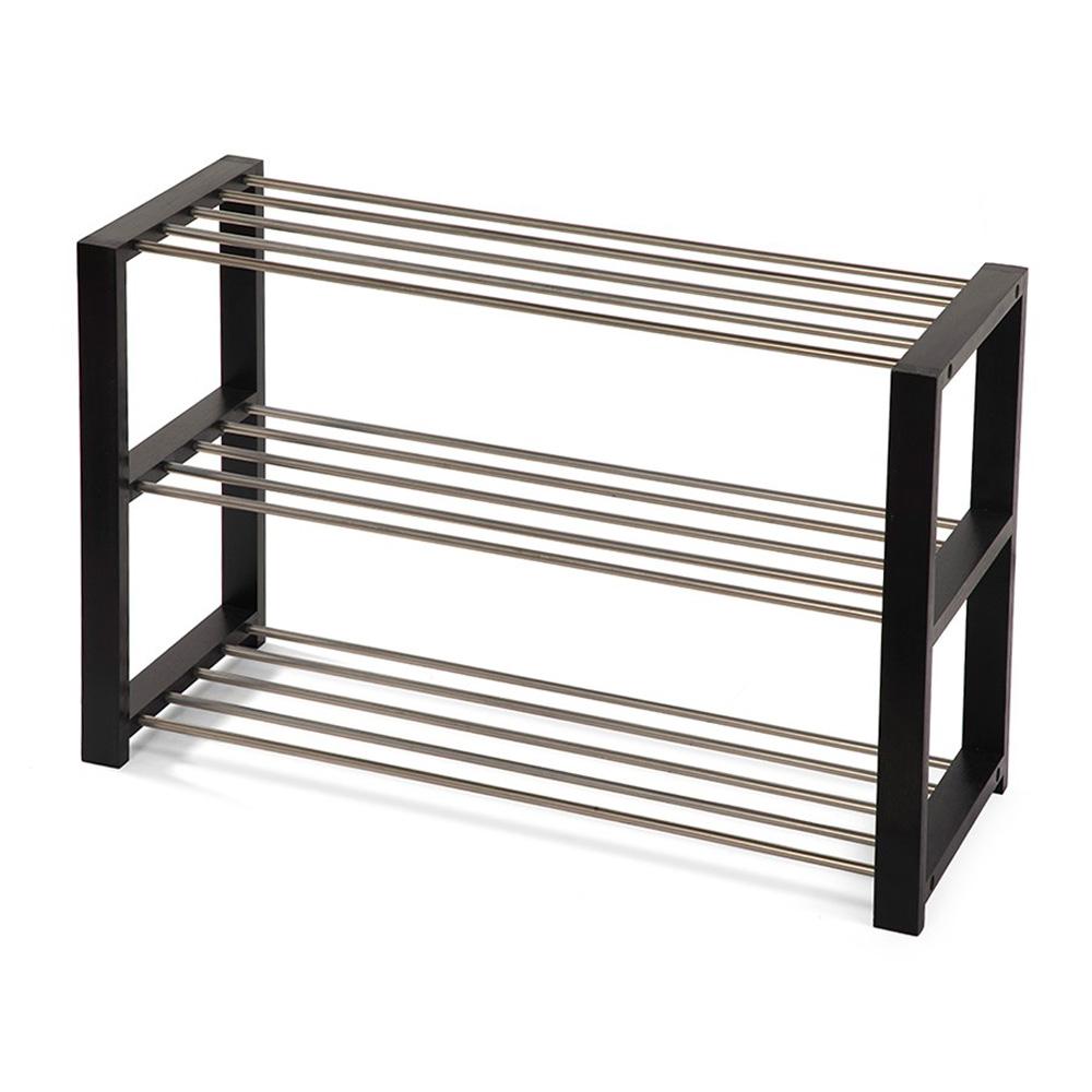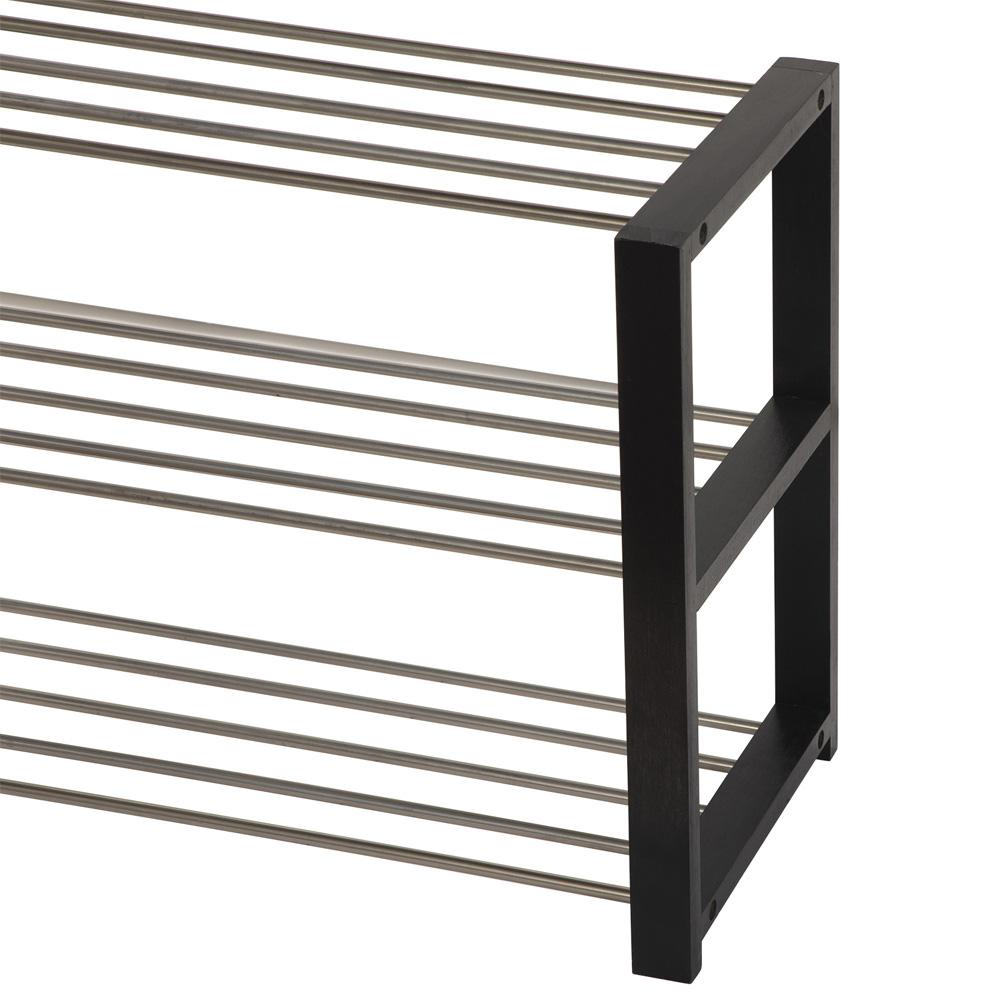 stříbrnými ocelovými tyčemi udrží boty přehledně a na jednom místě. Díky třem policím nabídne více úložného prostoru, přitom zůstává kompaktní a hodí se do předsíně, chodby i šatny.