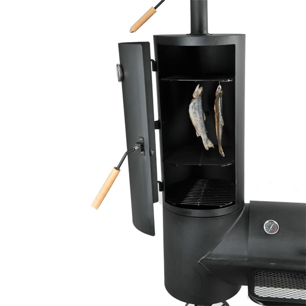 Vertikální XXL udírna s vlastním teploměrem otevře nové možnosti – ať už preferujete studené nebo teplé uzení, tady máte prostor na všechno od šťavnatých žebírek až po domácí klobásy.