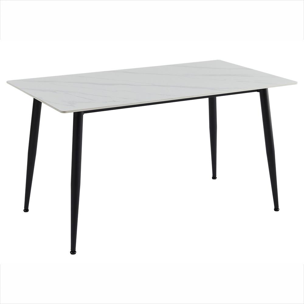 keramika (mat), bílý mramorový dekor, tloušťka desky 11 mm (T11), ocelové podnoží – černý práškový nástřik