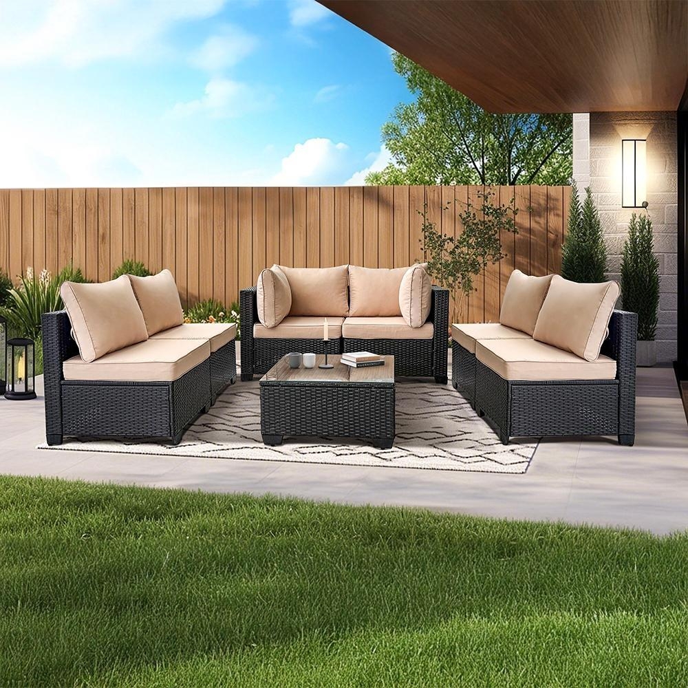 Zahradní ratanová sedací souprava AVENBERG ESPERANZA (II. jakost) – elegantní sedmidílná sada v antracitově černém provedení s béžovým čalouněním.