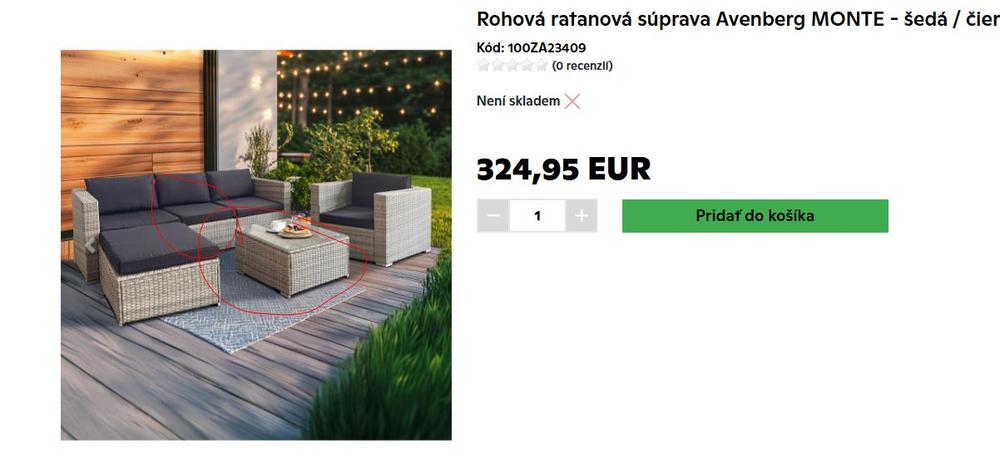 II. jakost – chybí 2× díl N ke stolu a 1× díl P (střed sedačky)